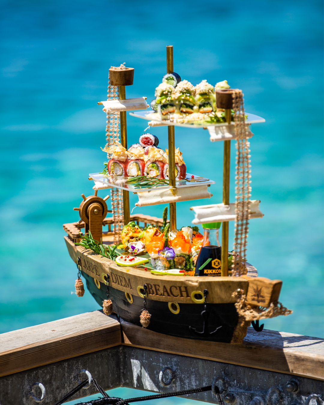Posebno mjesto u ponudi zauzima sushi, koji je autentično kulinarsko iskustvo i prava atrakcija za ljubitelje fine hrane. Sushi majstorica Ana Strukar kreira mini umjetnička djela koje oduzimaju dah kombinacijom svježih plodova mora, povrća i egzotičnih dodataka. Sushi u Carpe Diem Beachu ne poznaje kompromise – svaka rolica izrađena je od najkvalitetnijih sastojaka: svježe tune, lososa, škampa, rakova i pažljivo odabranog povrća i egzotičnog voća. Svaka rola je vizualno remek-djelo, ali i senzorno putovanje kroz najbolje od azijske i mediteranske kuhinje, kroz boje, arome i teksture koje se savršeno uklapaju u otočnu atmosferu Hvara.