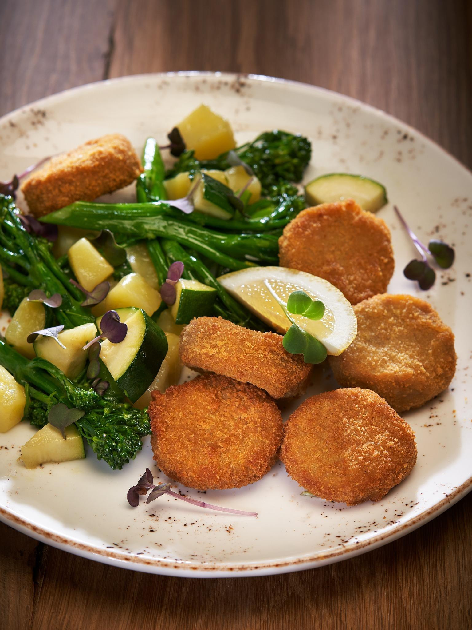 Priprema: Krumpire ogulite i narežite na kockice te stavite kuhati u lagano posoljenu vodu. Brokulu dobro operite i narežite na manje komade. Tikvicu narežite na četvrtine, odstranite spužvastu sredinu i narežite je potom na komadiće malo veće od krumpira. Kada je krumpir skoro kuhan, dodajte brokulu i komade tikvica. Sve zajedno kuhajte da krumpir skroz omekša, a brokula i tikvica ostanu „al dente“. Procijedite, povrće začinite sitno sjeckanim češnjakom i poškropite maslinovim uljem. Lagano posolite i popaprite, te nježno promiješajte i poslužite uz Fishnuggetse Classic koje brzo i jednostavno pripremite po uputi na pakiranju.