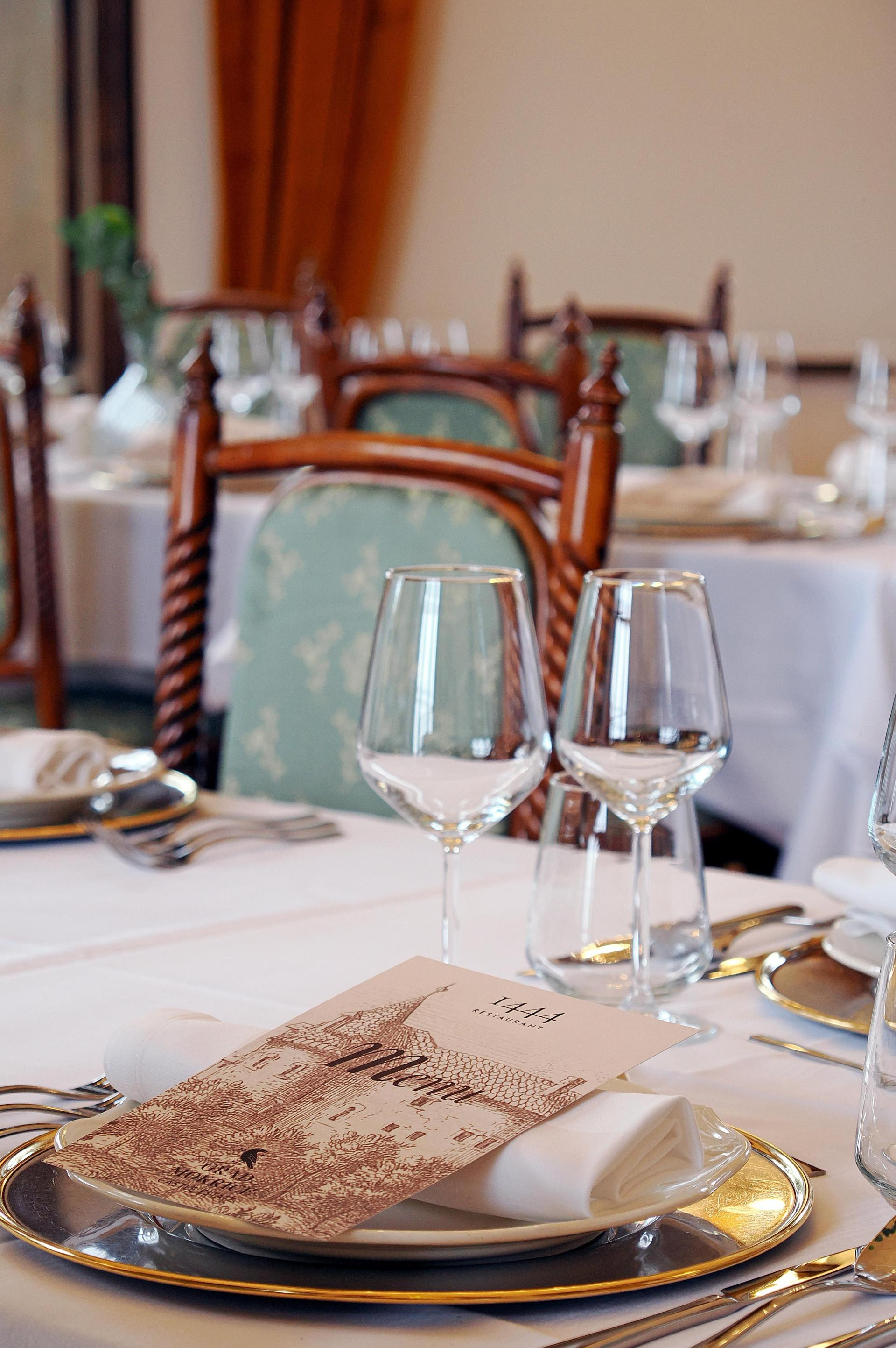 Gastronomi dobro znaju da se u ovom restoranu treba prepustiti doživljaju raznovrsnih okusa. Menu je konkretan, ciljan, tako da birate između 20-tak različito kreiranih tanjura svoj gastro užitak. Tako su u zimskom meniju nalazi Vitello tonnato Carpaccio i chips cikle s domaćim sirom, te domaća paštetica s bijelim tartufom i dehidriranim jajetom- sve upotpunjeno hrskavim kruhom s heljdom. Za one koji vole sir, tu je i toplo predjelo - Dvorska štrukla od lokalnog sira i vrhnja upotpunjena „kozjanskim spuhancima“. Glavna jela zimskog menija Restorana 1444 su „Pork belly“sa zapečenim grahom, dijonskim umakom i „kimchijem“. Za one koji vole konkretnije, tu je Muflon s pireom od lješnjaka, umakom od vrganja i chips batata. Za one koji ne jedu meso, Andželevski je kreirao divnu fuziju povrća i žitarica Posavja - punjenu papriku s orzom povrćem i kremom poriluka. Uz glavna jela poslužuje se Modra frankinja, Dular i Merlot, Keltis. Slatku točku na I ovog gastro doživljaja stavit će vam poseban desert- „Mokriška viljamovka“ divna kombinacija alkohola i bijele čokolade koju povezuje kompot od kruške koja raste na stablima koja okružuju dvorac.