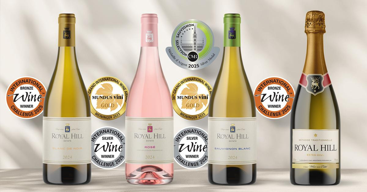 Od 2023. godine vinarija dobiva sve više značajnih nagrada za kvalitetu svojih mirnih i pjenušavih vina. Ovu je godinu Royal Hill započeo bolje nego ikada. Njihov Sauvignon Blanc iz 2024 je na najvećim međunarodnim i domaćim ocjenjivanjima osvojio čak četiri velike medalje - dva zlata i dva srebra. Nakon zlata na Urbanovu i Mundus Vini te srebra na Concours Mondial de Bruxelles Sauvignon Selection natjecanju, ovaj tjedan je erdutski sauvignon osvojio srebro “zlatnog sjaja”, s visokih 93 boda na International Wine Challenge u Londonu.