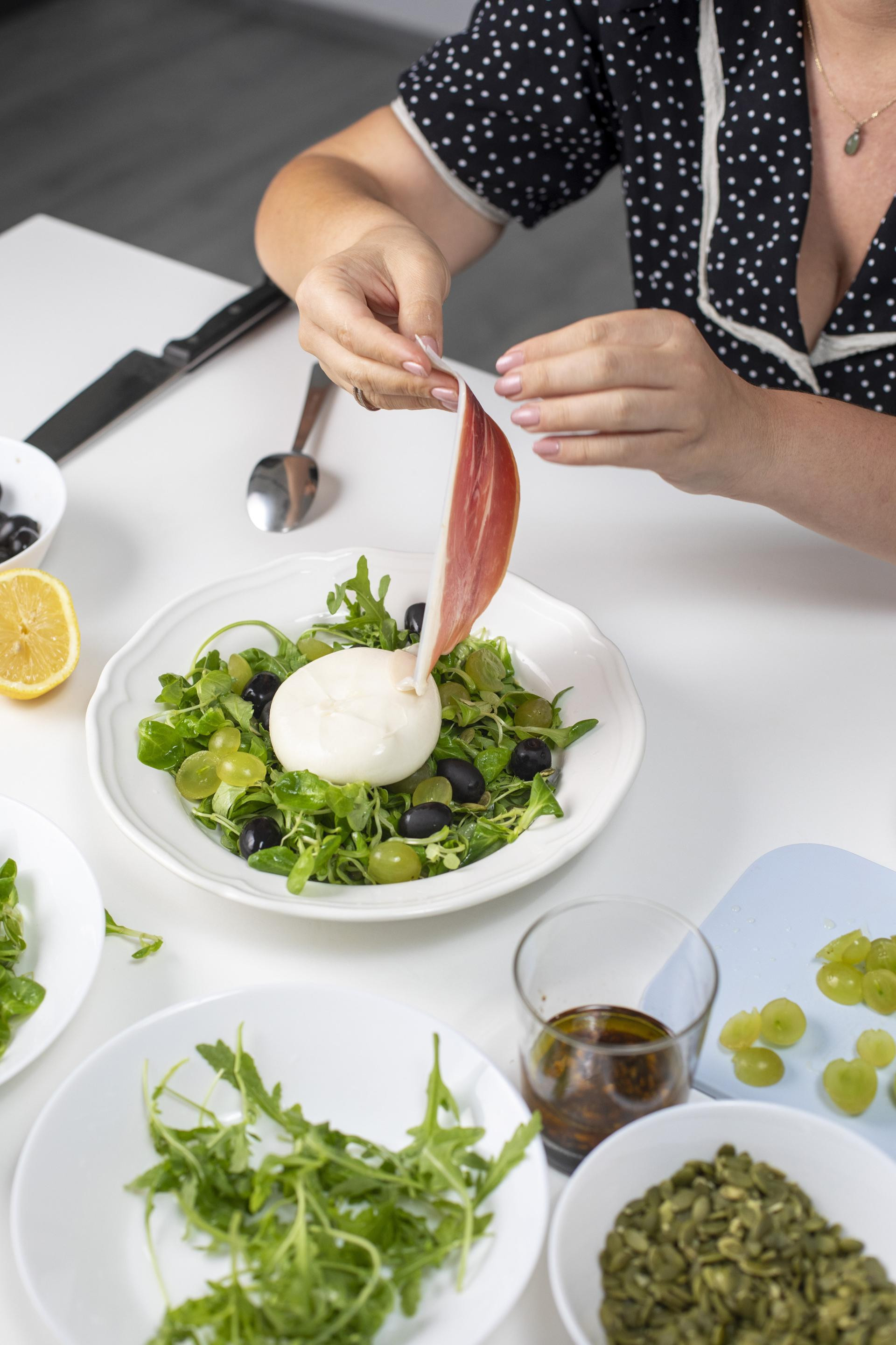 Najjednostavnije ju je poškropiti s nekoliko kapi vrhunskog maslinovog ulja, balzamičnog octa te s prstohvatom morske soli. Ipak, prava čarolija nastaje kad tu bazu nadopunimo svježim listovima salate, tanko rezanim pršutom, koji u Italiji štuju gotovo kao i burratu, sočnim bobicama grožđa koje donose nježnu kiselost, crnim maslinama i bučinim sjemenkama koje unose hrskavost i orašastu notu.