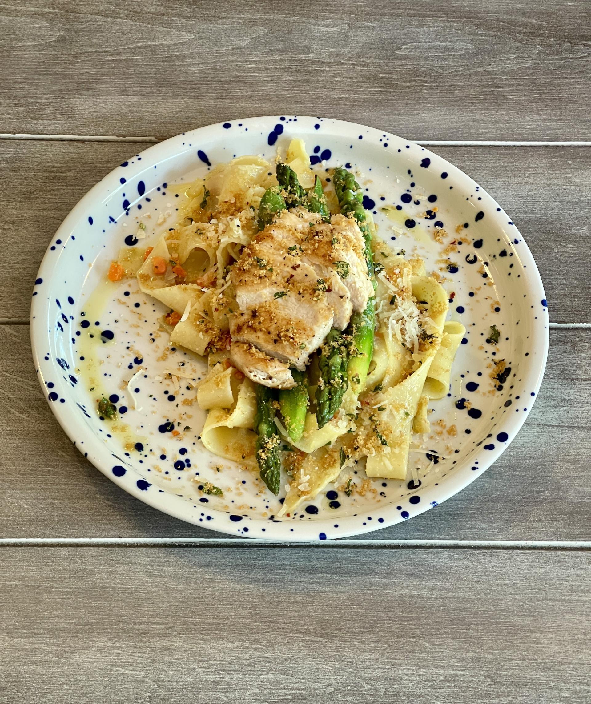 Nedjelju smo ovog tjedna odlučili učiniti što jednostavnijom, kako bismo više vremena imali za druge aktivnosti. Radimo zato tjesteninu s pečenom piletinom i šparogama priprema koje ne oduzima previše vremena, a ukusna je, zasitna i bogata.