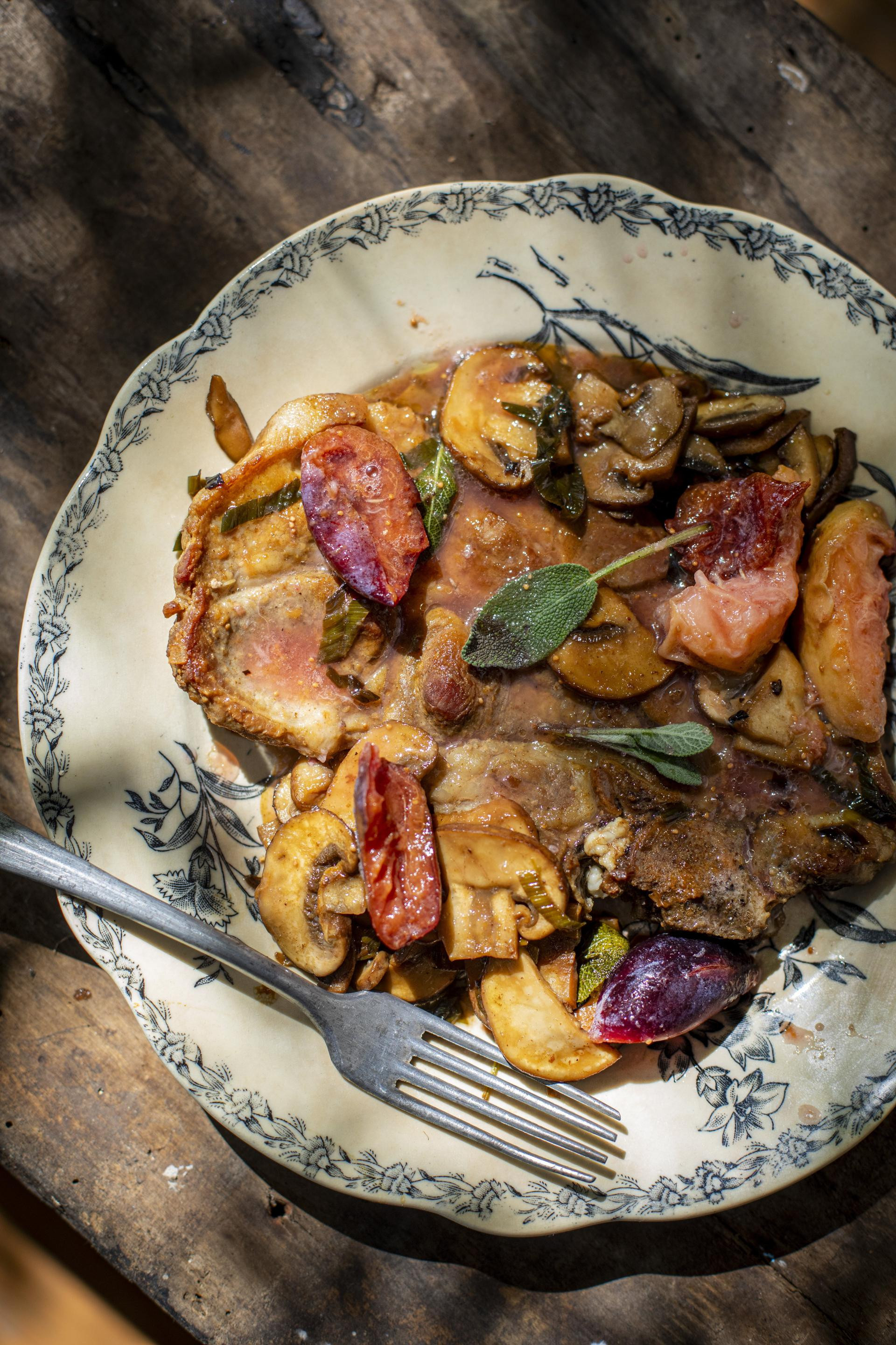 Već za 5 dana voće je ugodno kiselo, i slatko i slano, a sok u kojem fermentira idealna je prekrasno ružičasta tekućina za mariniranje mesa. U toj smo salamuri pacali običnu svinjsku vratinu, a mesu pečenom na naglo dodali smo i pirjane šampinjone s kaduljom i, na samom kraju, lakto-šljive. Vratina vam više neće biti dosadna.