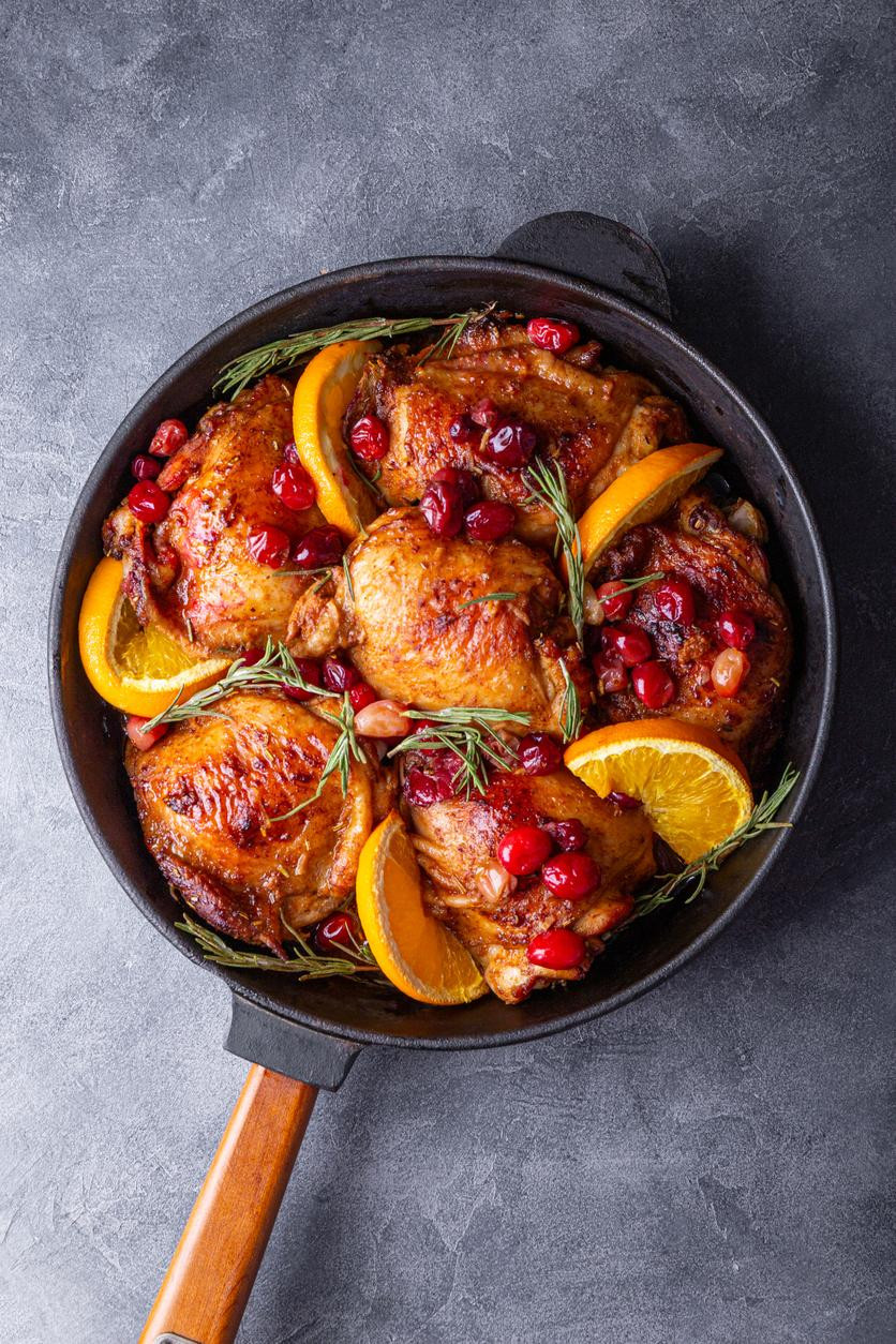 Za nedjeljni ručak predlažemo pečenu piletinu s brusnicama i narančom. Spoj slatkih i citrusnih nota s aromatičnim začinskim biljem čini ovo jelo posebnim i idealnim za zajednički obiteljski stol.
