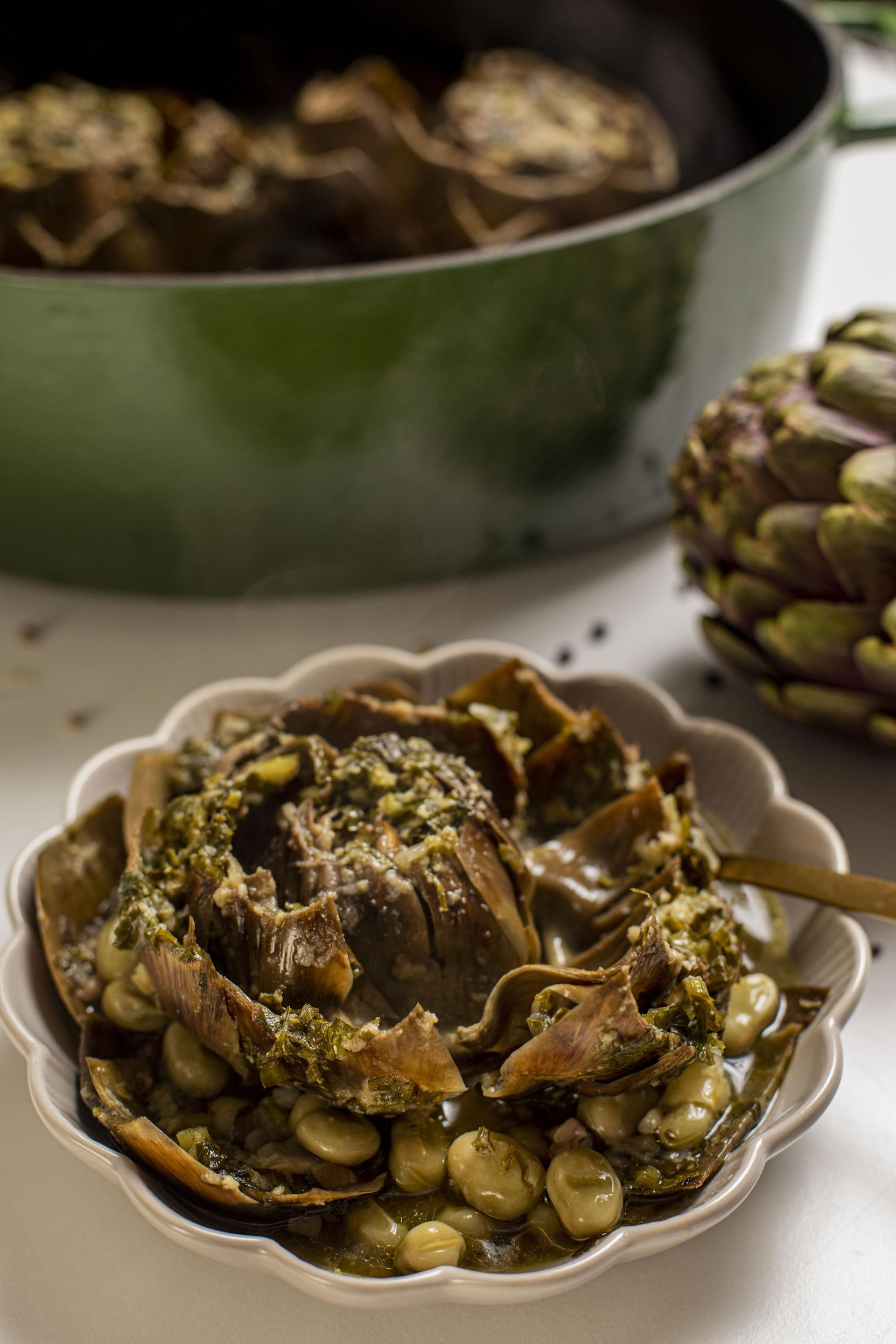 Vjerojatno ne postoji bolje sezonsko jelo koje ovih dana možete pripremiti od dobrih artičoka s bobom. Svratite na tržnicu, kupite nekoliko lijepih, velikih artičoka, pripremite i bob, pancetu, ljutiku, limun i vezicu peršina, dodajte još pokoji začin i dodatak, pa napravite dalmatinski klasik koji je najbolje poslužiti uz dobar kruh, kojim ćete zatim pokupiti sve sokove i ostatke s tanjura.