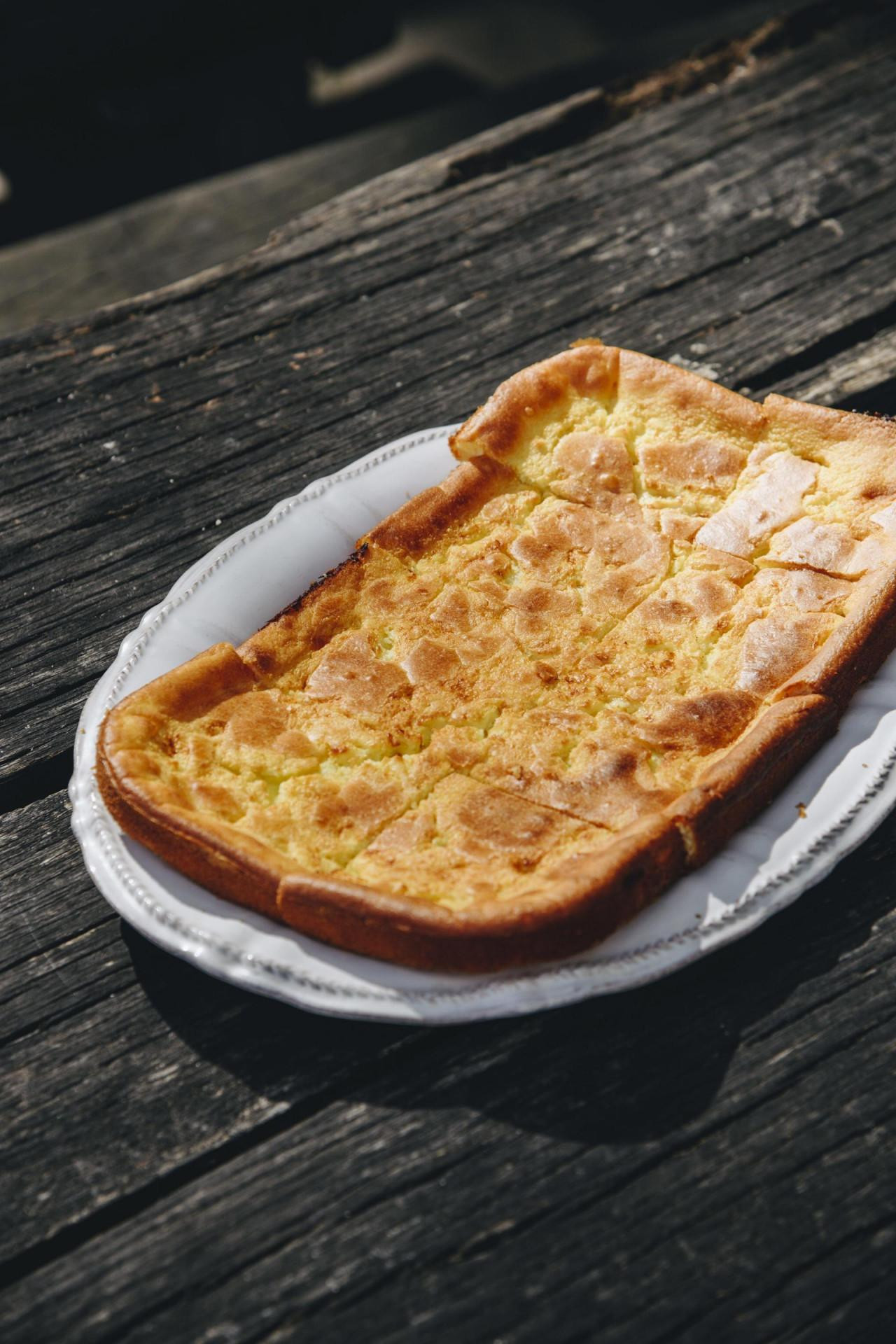Jaje, sol, vrhnje i kiselo mlijeko zamutite pa u to postupno dodajte kukuruznu krupicu i na kraju sodu bikarbonu. Izlijte u prethodno namašćen lim za pečenje. Na smjesu odozgo stavite šljive. Stavite peći u pećnicu na 190°C oko pola sata. Nakon što je kolač pečen, može se još premazati pekmezom.