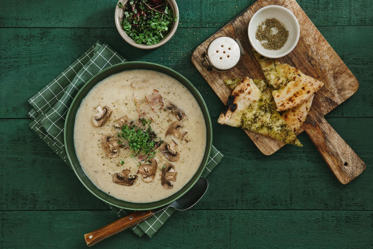 Krem-juha od gljiva spaja bogatstvo šumskih aroma sa svježinom cvjetače i blagim začinima, stvarajući nježnu, kremastu teksturu.
