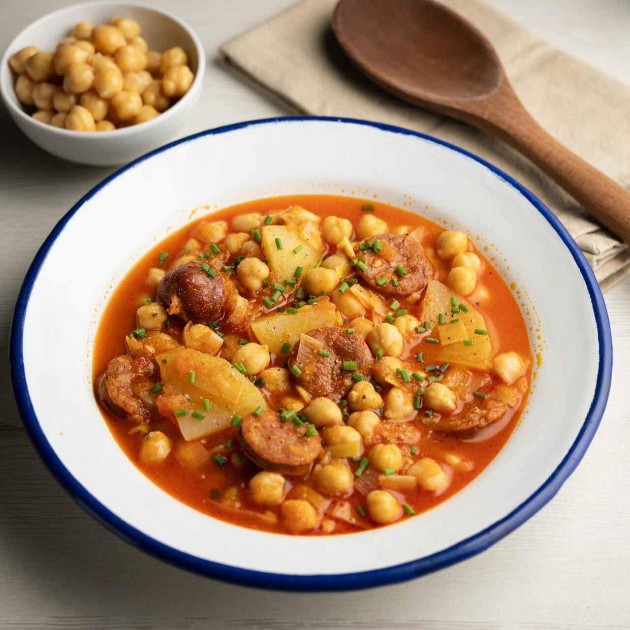 Na ulju najprije pirjajte sitno nasjeckani luk, a kada poprimi boju, dodajte narezanu mrkvu i krumpir. Narežite ih na veličinu koju želite, ali neka svi komadići budu jednaki. Pirjajte pet minuta pa dodajte kobasice narezane na kolutiće. Začinite crvenom mljevenom paprikom i kuminom te podlijte vodom (ili temeljcem ako ga imate). Pustite da se krčka 20-ak minuta. Dodajte slanutak koji ste isprali, po potrebi dodajte vode i kuhajte još 10 minuta. Na kraju umiješajte svježi sitno nasjeckani peršin ili vlasac. Poslužite uz krišku kruha.