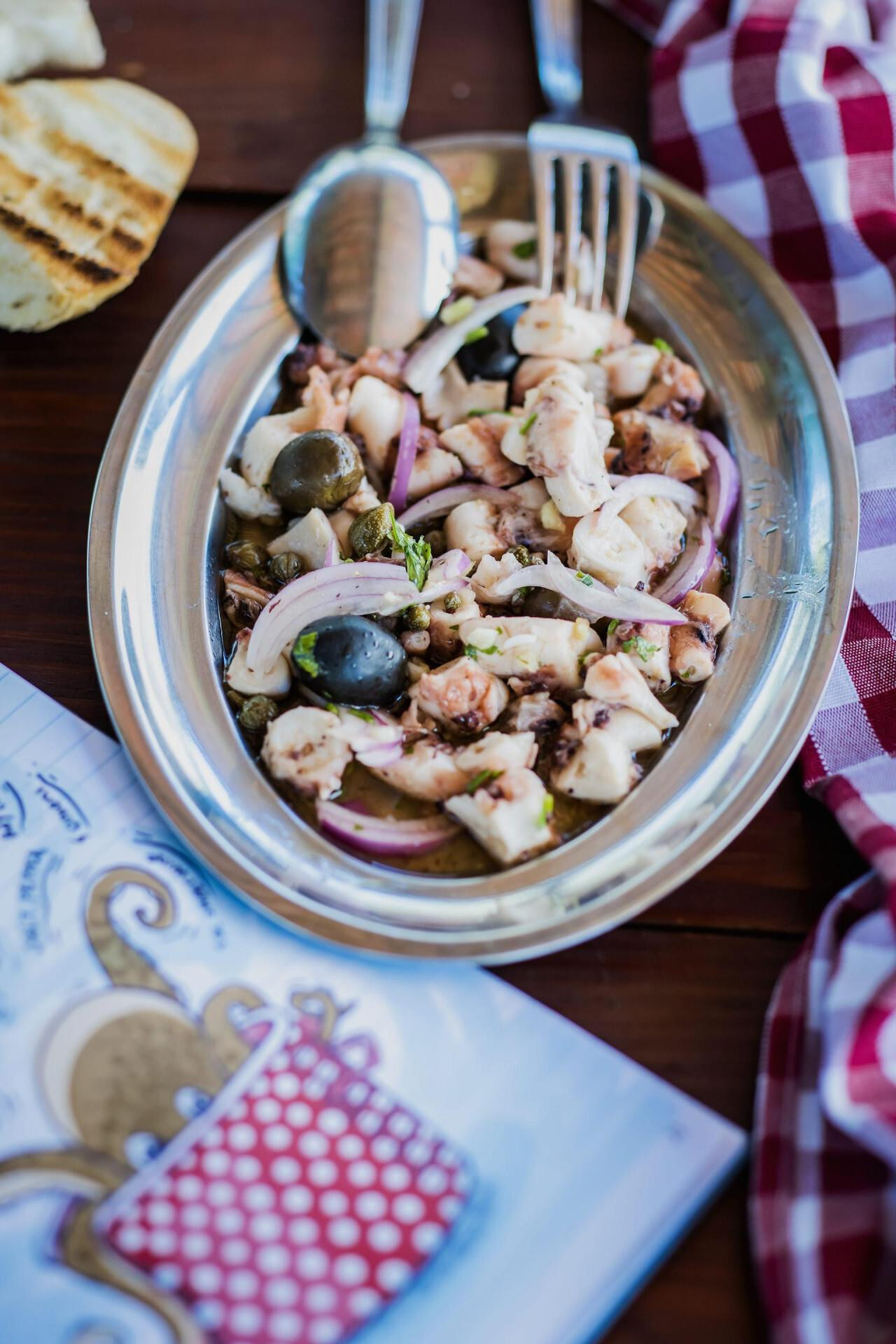 Kada smo svojevremeno bili na otoku Kaknu, do kojeg se može doći samo brodicom, i posjetili Ninu i Slavena Radovčića s obitelji, u konobi 7. nebo - smještenoj usred maslinika na tom otočiću, pripremili su nam svoju inačicu salate od hobotnice, o čemu smo pisali ovdje. Toliko nam se svidjela da se uvijek vraćamo ovom receptu koji ćemo s vama podijeliti.