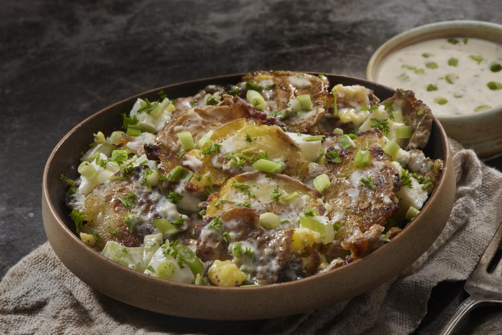Ovo nije klasična hladna salata od krumpira, jer se krumpir peče, no zato i jest odlična - možete je jesti toplo-hladnu! Tko zna, možda nakon ove, više niti nećete poželjeti drugačiju salatu od krumpira.