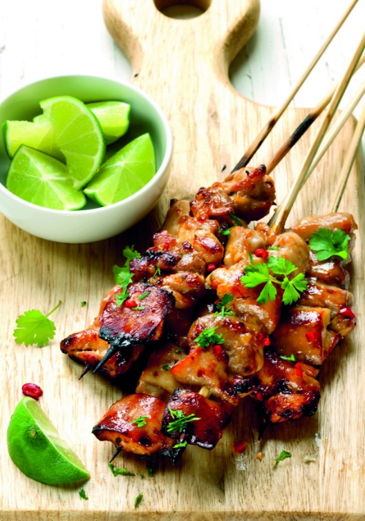 Marelice izrežite na sitne komadiće i pomiješajte s ostalim sastojcima. Meso narežite na komadiće pa ih potopite u marinadu. Ostavite da se marinira najmanje četiri sata. Nabodite meso na štapiće i pecite na blagoj vatri pazeći da ne zagore te da se ne osuše.