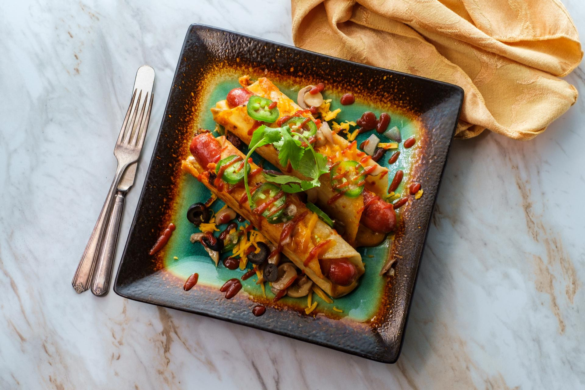 Hotdog u kukuruznoj tortilji sa sirom i ljutim umakom