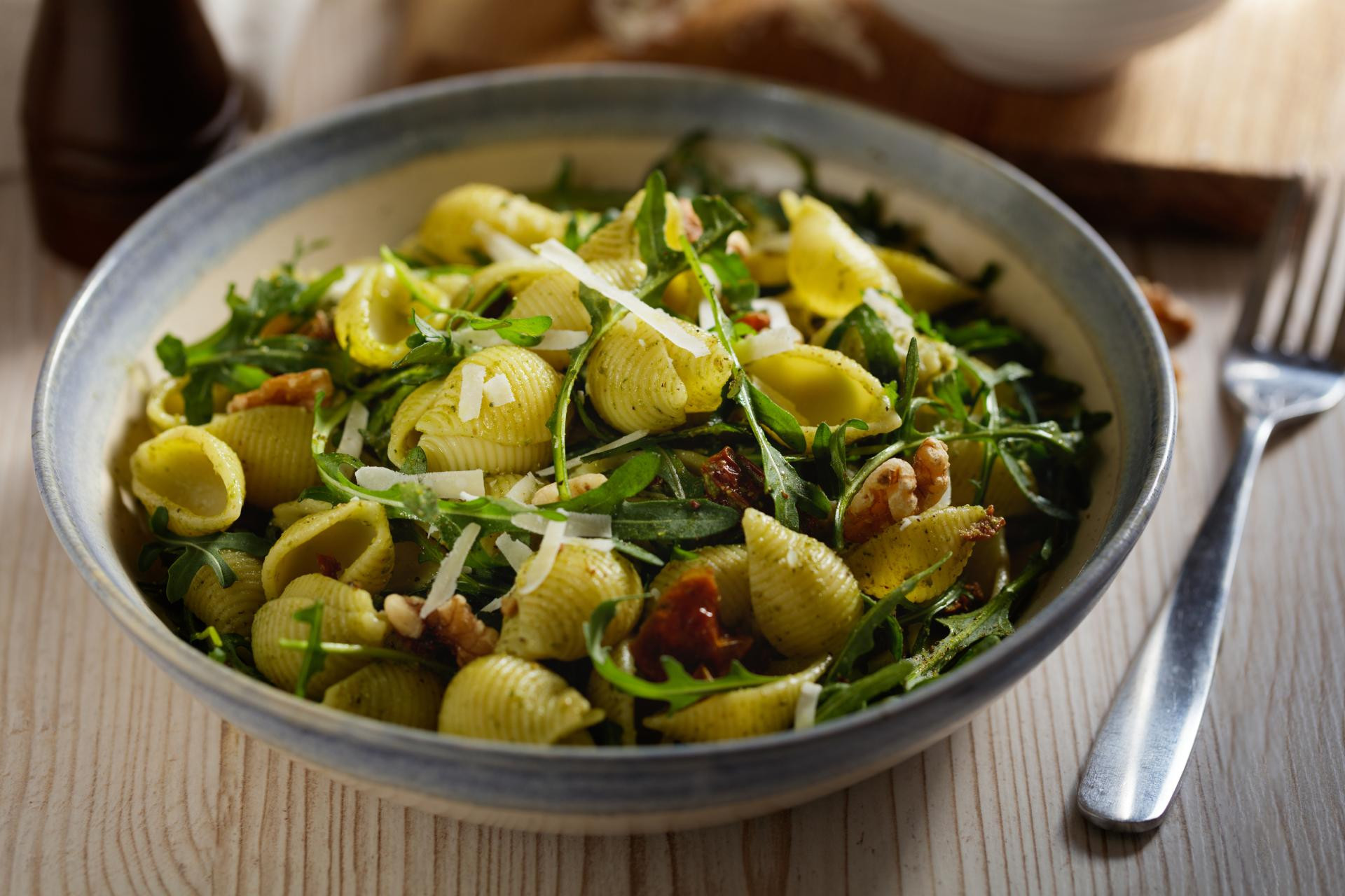 Kada vam se jede nešto brzo, a zasitno i fino, ova tjestenina mogla bi biti dobra ideja. Spaja rikolu, sušene rajčice i pesto od oraha, jednostavna je, aromatična i ukusna topla i hladna.