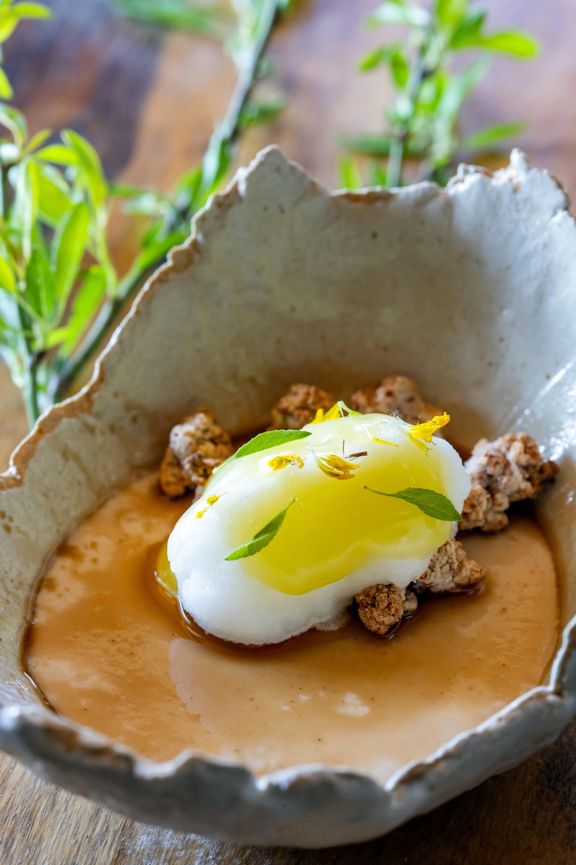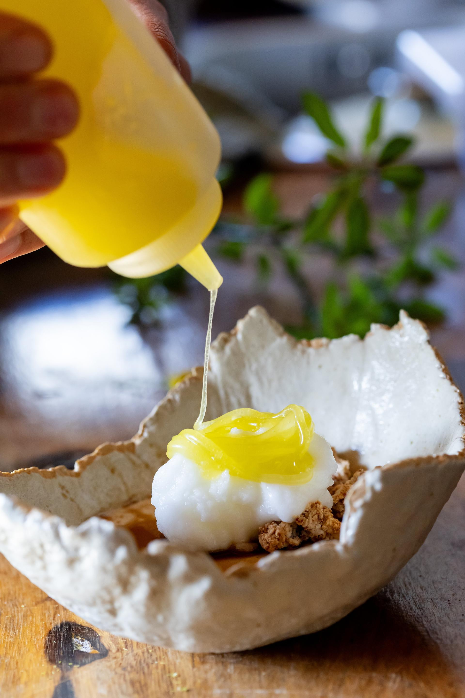 1. Mousse od karamelizirane bijele pečene čokolade i hidrolata zemlje
