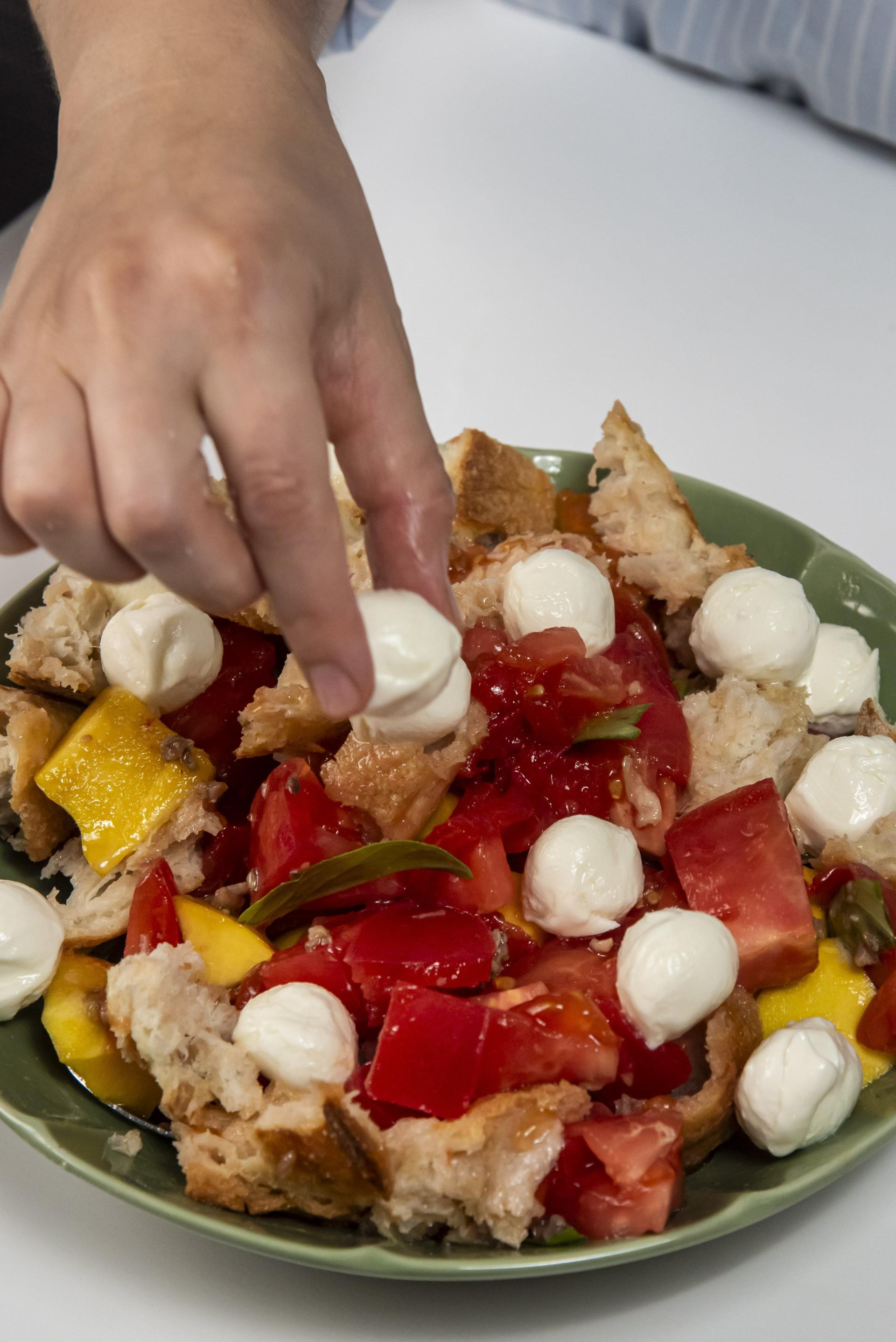 Klasičan talijanski recept uvijek možete nadograditi i drugim sastojcima, poput mozzarelle, tune, inćuna i kapara, kojima se i sami volimo poigrati. Ovog puta smo, primjerice, napravili salatu inspirirani panzanellom za koju smo koristili komadiće baguettea od jučer, veliku, lijepu ljetnu rajčicu i jednu breskvu za slatkoću, dressing smo napravili od maslinova ulja, octa, ribanog češnjaka, sitno sjeckanih inćuna i bosiljka, a dodatno smo je obogatili i mini mozzarellom. Ispala je top, još bolja kada je kratko (ali pazite da to bude zbilja kratko, kako kruh ne bi postao premekan i gnjecav) odstajala u hladnjaku. Recept vas čeka u nastavku.