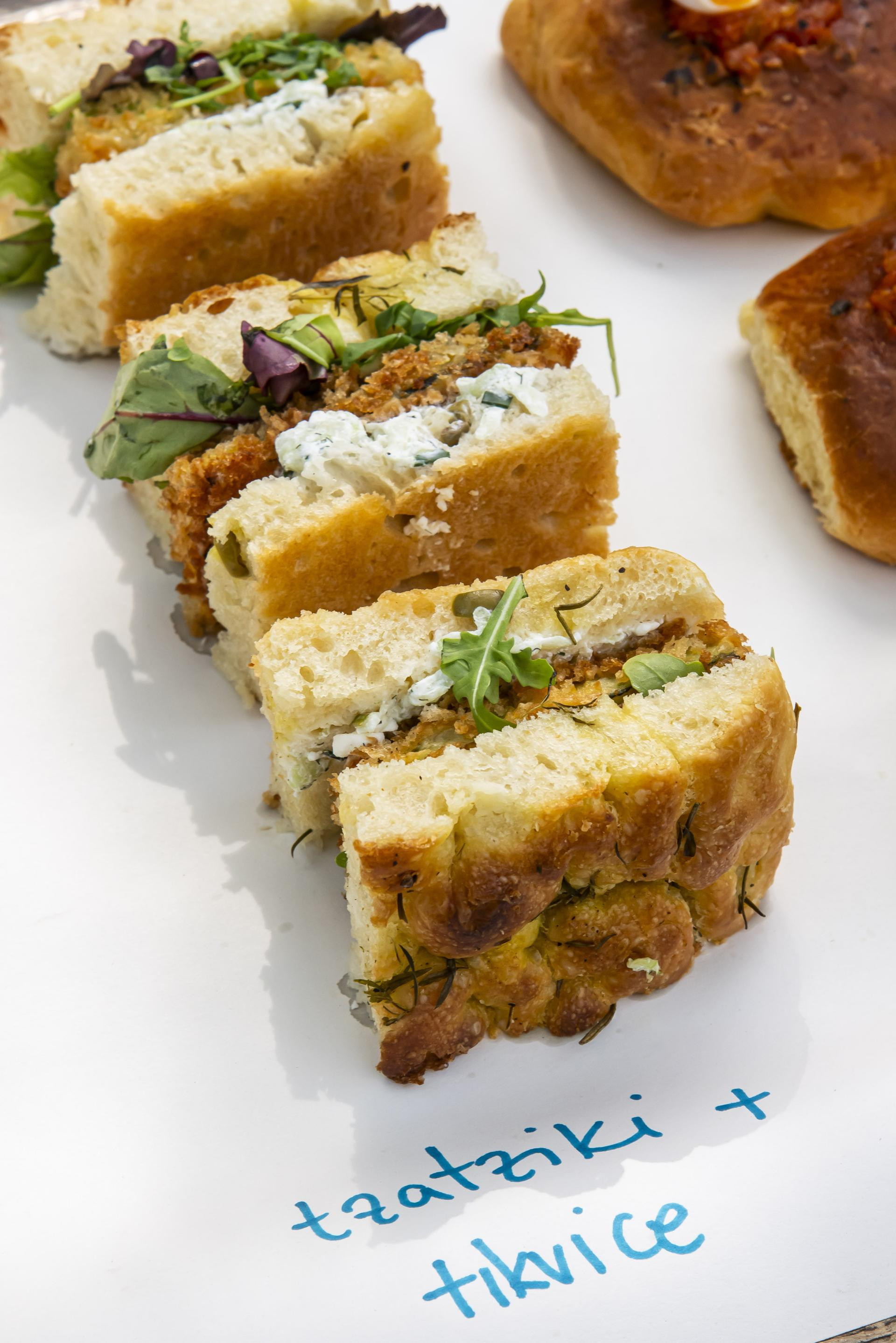 Prvo sam, dakle, sve dobro izmaštala, osmislila, vizualizirala, a onda, inspirirana sličnim idejama s Instagrama (a što drugo?!) svoj mali san pretvorila u zbilju. Barem na jedno poslijepodne, kada sam u parkiću iza zgrade okupila dragu mi i uvijek gladnu ekipu i prezentirala im ono što bih kupcima u ovo vruće i teško doba godine ponudila u svojoj maloj pekarnici. Vodila sam se sezonom, onim najboljim od ljeta, pa sam tako zaključila da bi se u mojoj imaginarnoj vitrini obavezno nalazilo nešto s dobrom šalšom od sočnih, slatkih rajčica s Dolca, zatim krastavci, i to u formi svima omiljene salate s jogurtom, pa i tikvice, hrskave, pohane u sendviču, kao omaž jednoj i jedinoj princess Ozani.