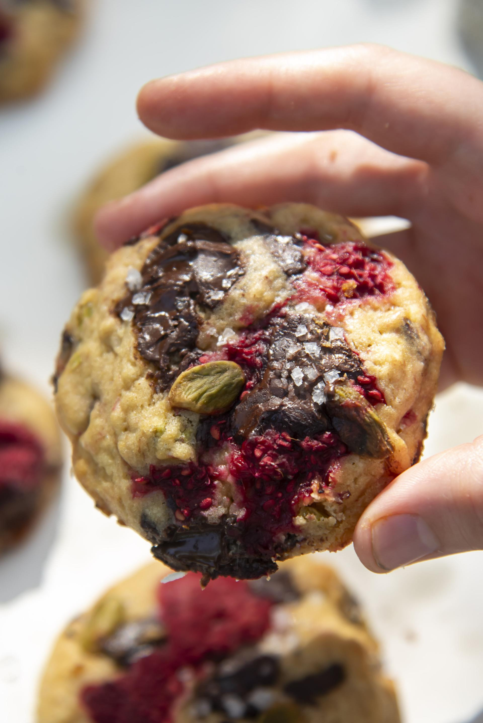 KEKSI S ČOKOLADOM, PISTACIJAMA I MALINAMA
