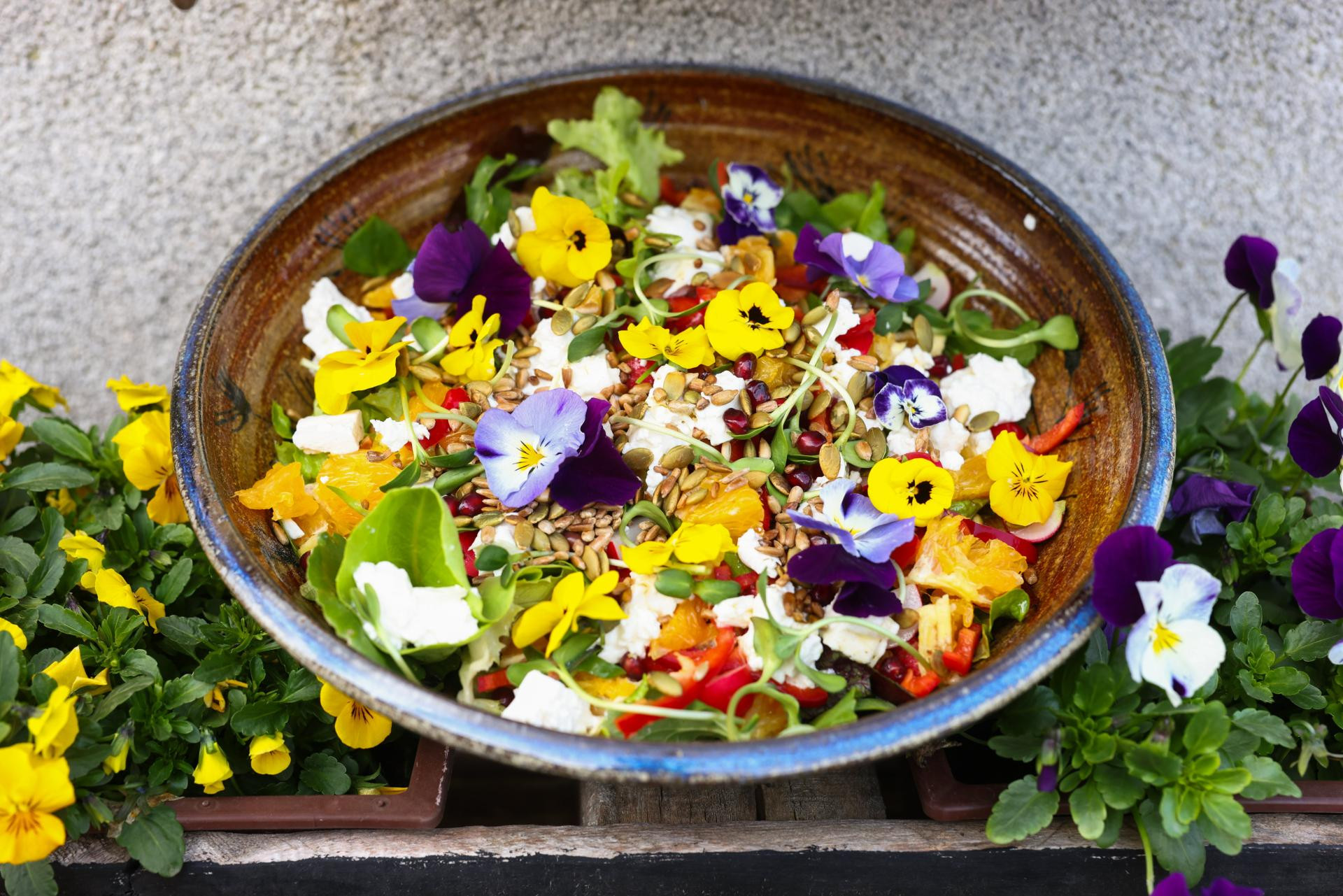 Dobro operite i ocijedite salatu i ostalo povrće. Sve sitno narežite. Pripremite dresing tako što ćete u teglicu s poklopcem dodati sve sastojke (ulje, ocat, sol i senf), dobro zatvoriti i snažno protresti. Salatu promiješajte s 3⁄4 dresinga. Po njoj razbacajte sir, rotkvice, naranču, nar, klice i na šnite narezano tvrdo kuhano jaje. Prelijte ostatkom dresinga. Na kraju sve pospite prženim sjemenkama. U veganskoj varijanti izostavite jaja. Ako slučajno ne možete do svježe salate, izvrsna zamjena su naribani kupus (naš domaći ili kineski ili oba) i mrkva. Mesojedi mogu dodati meso. Ovdje najbolje paše pileće ili pureće bijelo meso naglo ispečeno na tavi s malo ulja nekoliko minuta sa svake strane i na kraju dodali nekoliko kapi worcestershire umaka. Ohladite prije dodavanja na salatu. Zadatak je ove salate nadoknaditi vlakna i proteine te zadovoljiti potrebu za raznolikošću i estetskom vrijednosti hrane.