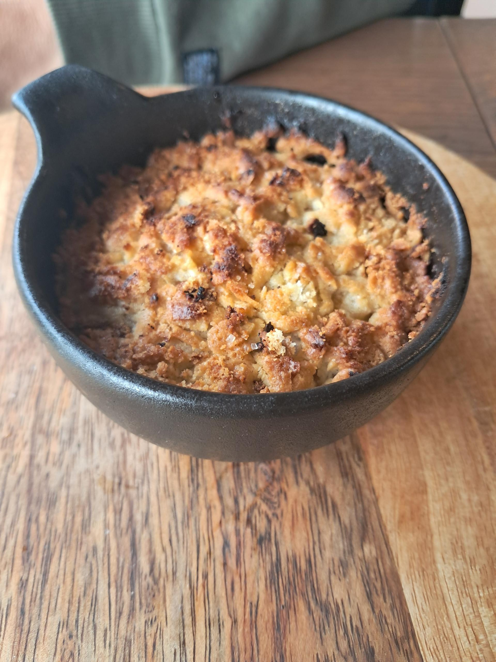 Sladoled je bio ukusan, bučino ulje jedva se osjetilo, ali bio je direktno iz zamrzivača, pretvrd. Crumble je pak trebalo pričekati da se ohladi, toliko je bio vruć - možda ipak nije trebalo isključiti sladoled, zbilja bi mu dobro došao.