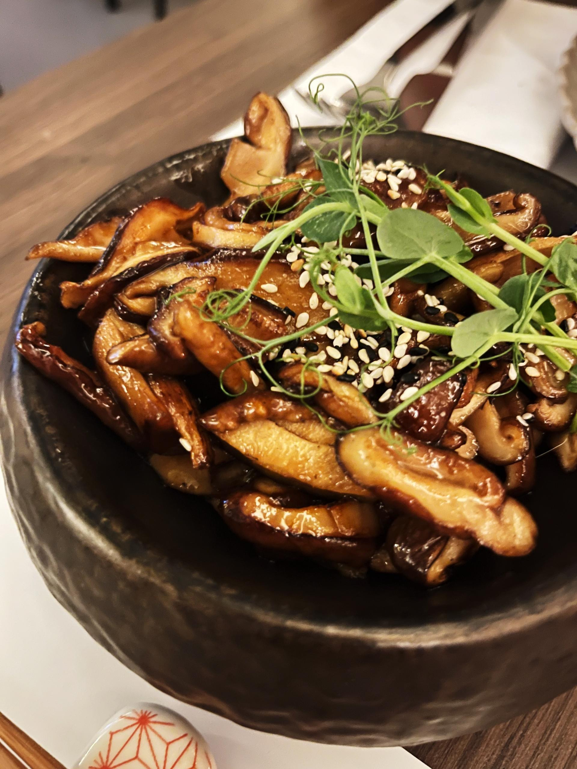 S druge strane, gljive sa sezamom i medom bile su odlične, bogato i lijepo začinjene i bili bismo zadovoljni i da smo naručili samo porciju riže i ovaj prilog. Mrkva s kozjim sirom i teriyaki umakom nije nam ostala u najljepšem sjećanju. Mrkva je bila korektno obrađena, ali cijelo jelo nije bilo ništa više od toga.