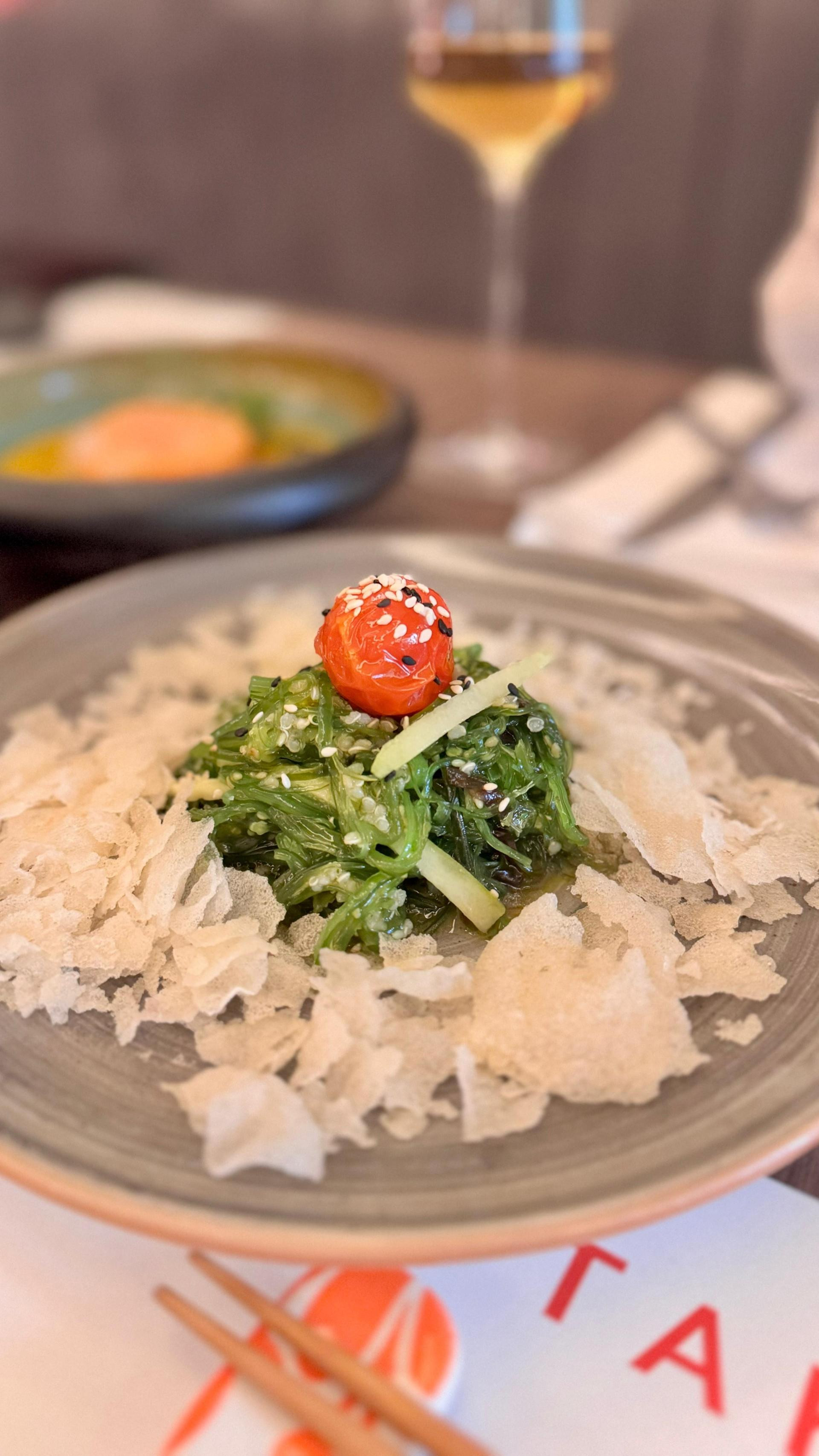Nakon što smo se napokon dogovorili čime ćemo započeti večeru, za desetak minuta na stol nam je stigla wakami salata (10 € za porciju), Takenoko tartar (23 €), surf&turf (18 €) i Strawberry Adriatic (15 €).