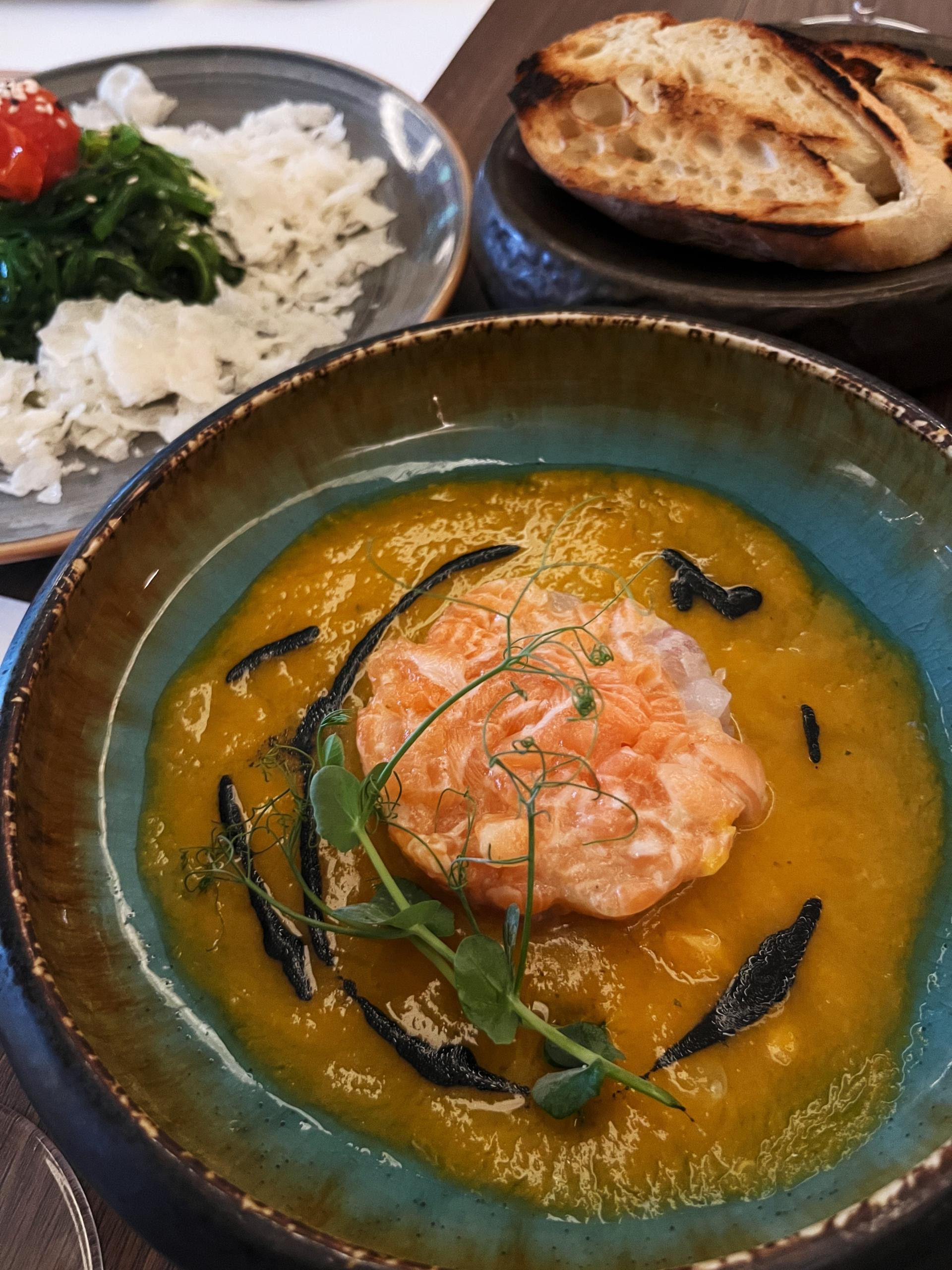 Takenoko tartar, koji rade s lososom, brancinom, jakobovim kapicama i aji amarilom i Strawberry Adriatic brancin s jagodama i pestom od korijandra su, pak, bili lagano razočaranje. Tartar je bio nezačinjen, beskarakteran i na nas nije ostavio baš nikakav dojam, a ceviche, što je trebalo biti drugo jelo, izgledao je kao još jedan tartar u blendanim, nimalo slatkim, vodenastim jagodama. Neki dublji okus, čak i onaj koji bi dala kvalitetna riba, izostao je.