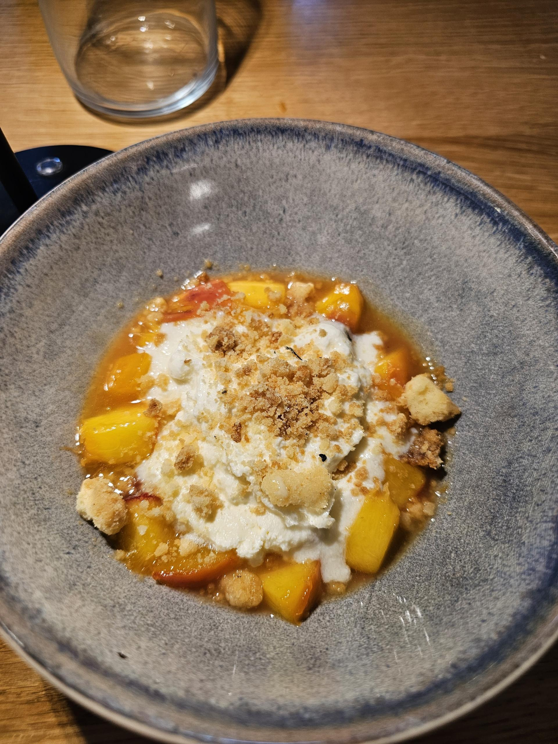 Crumble je vrlo zanimljiv jer kombinira slatkoću voća i crumblea ili mrvljenca, s punim, gotovo slankastim okusom skute. I moramo priznati da nam se od dva deserta ovaj manje svidio. Ne mislimo da je loš, jednostavno nam nije pasala kombinacija skute i voća.