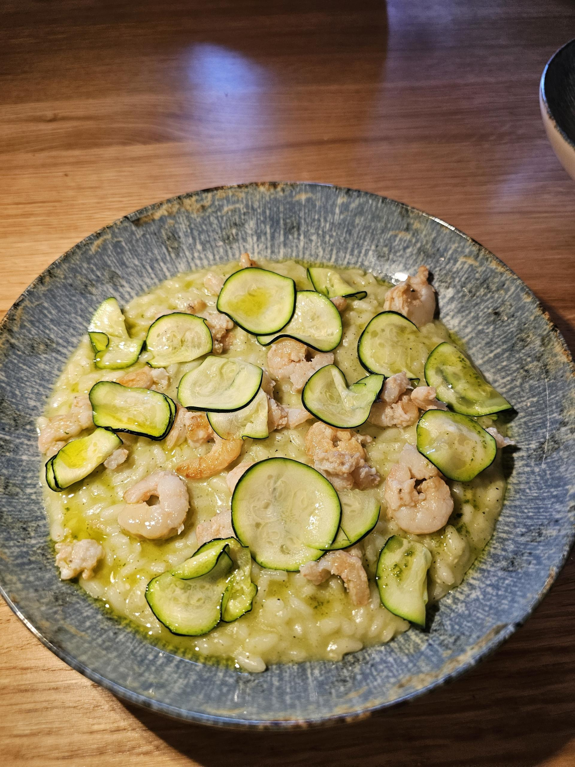 Rižoto od tikvice i jadranskih kozica također nam se svidio okusom, iako je riža malo pobjegla, ali još uvijek nije bila raskuhana u kašu. Tikvice i povrtni temeljac lijepa su podloga za glavnu zvijezdu, jadranske kozice koje okusom i teksturom jednostavno ne možete zamijeniti.