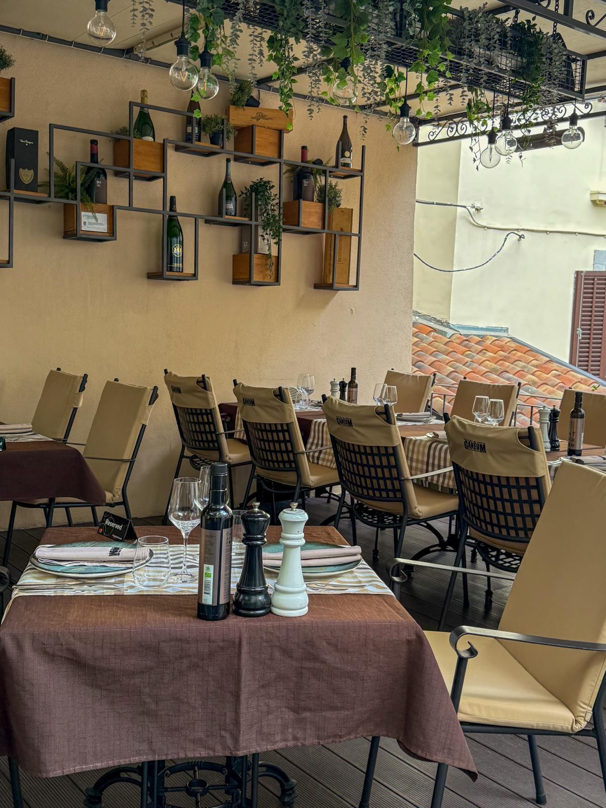 Ganeum smo posjetili jedne ugodne nedjelje, u 17 sati. Inače, ljetno radno vrijeme započinje im upravo u 17 sati, stoga smo bili prvi gosti na terasi. Mjesto smo mogli birati pa smo sjeli za stol na povišenoj terasi, gdje je pod našim nogama bilo kamenje.