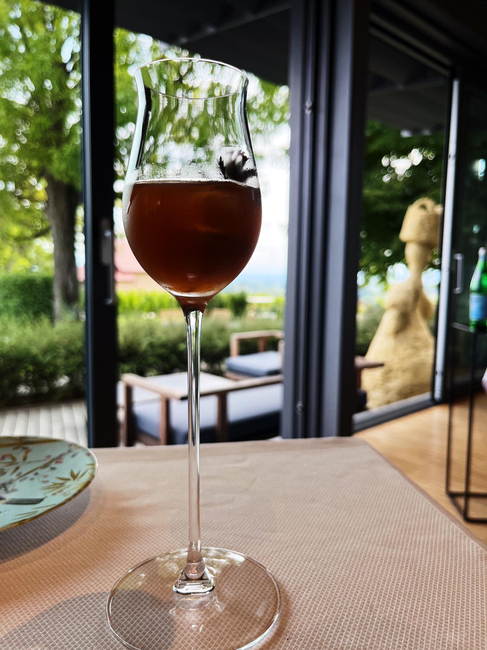 Prije samog pozdrava iz kuhinje poslužen nam je Korak Rosé Brut, a kao dio bezalkoholnog sparivanja, piće u kojem su u Koraku iskoristili grožđe koje, kada dođe vrijeme berbe, ne postiže svoj puni potencijal, ali ne dopuštaju da propadne već od njega rade napitak koji je najbolje opisati kao kombinaciju kombuche i mošta u najboljoj formi. Ovaj napitak nas je razbudio i dao nam naslutiti da će ovo sparivanje biti sve samo ne dosadno.