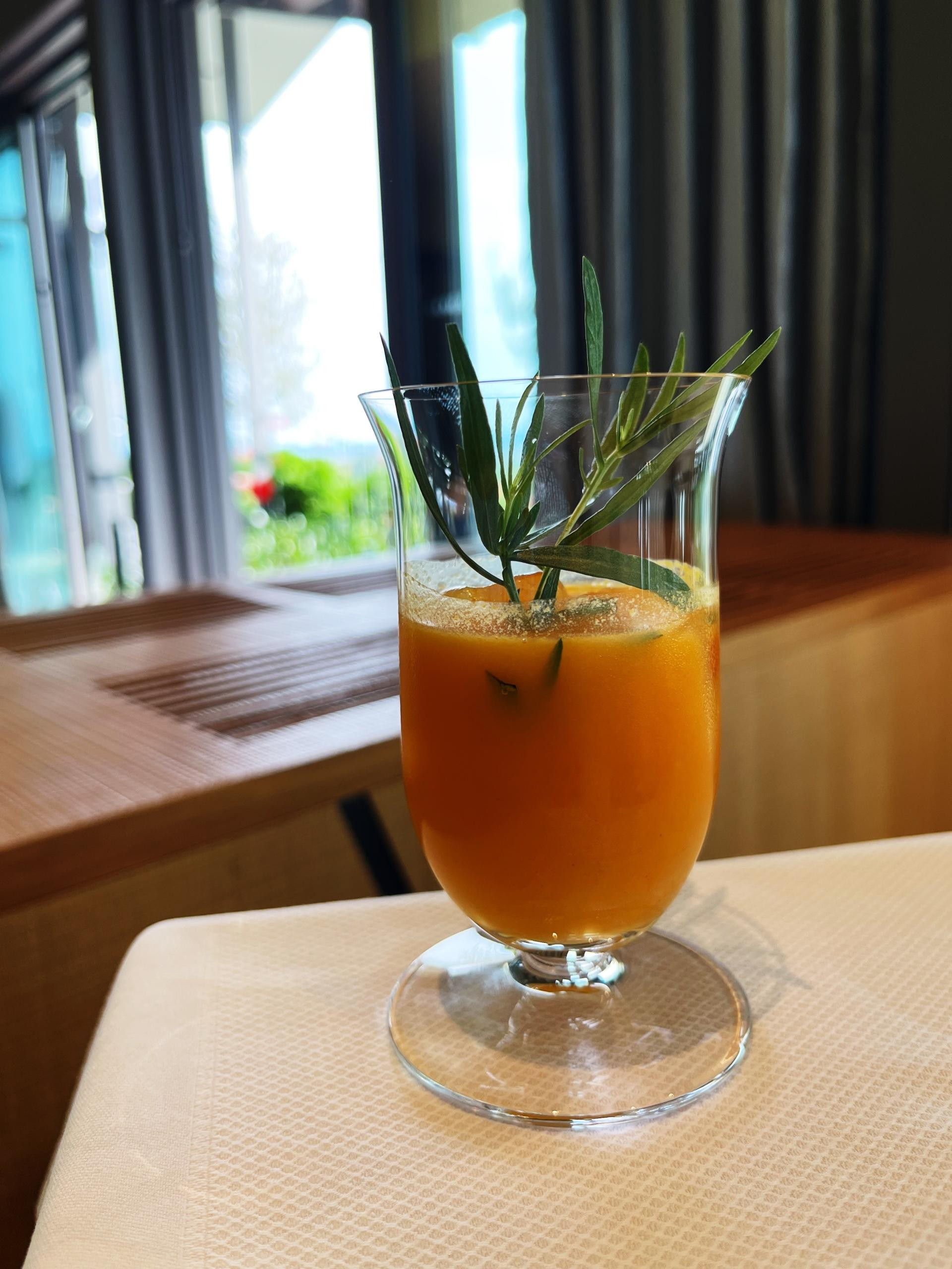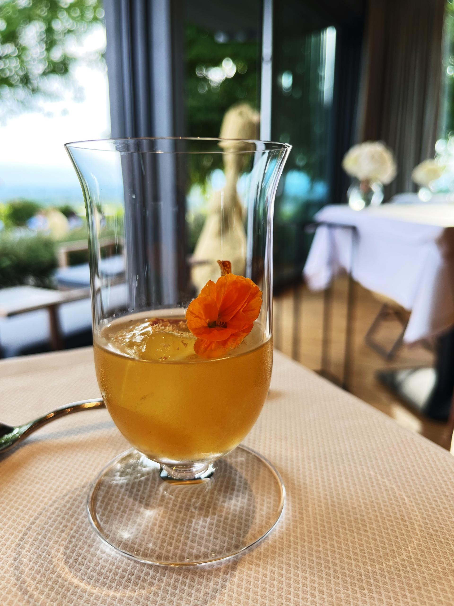 Po ulasku u restoran, ljubazno, simpatično i za razgovor otvoreno osoblje uputit će vas za stol. Ako ste sretne ruke, dobit ćete onaj kraj velike staklene stijene, gdje se još malo možete diviti pogledu. No ako ste stvarno jako sretne ruke, u ručku ili večeri uživat ćete na otvorenom. Za vrijeme našeg posjeta vrijeme je bilo promjenjivo i oblačno, pa smo ipak pripali ovim prvim sretnicima, smještenima uz prozor. Odabrali smo meni od osam sljedova, uparen s bezalkoholnim napicima i, kako se pokazalo na kraju nedjeljnog ručka, to je bila odlična odluka.