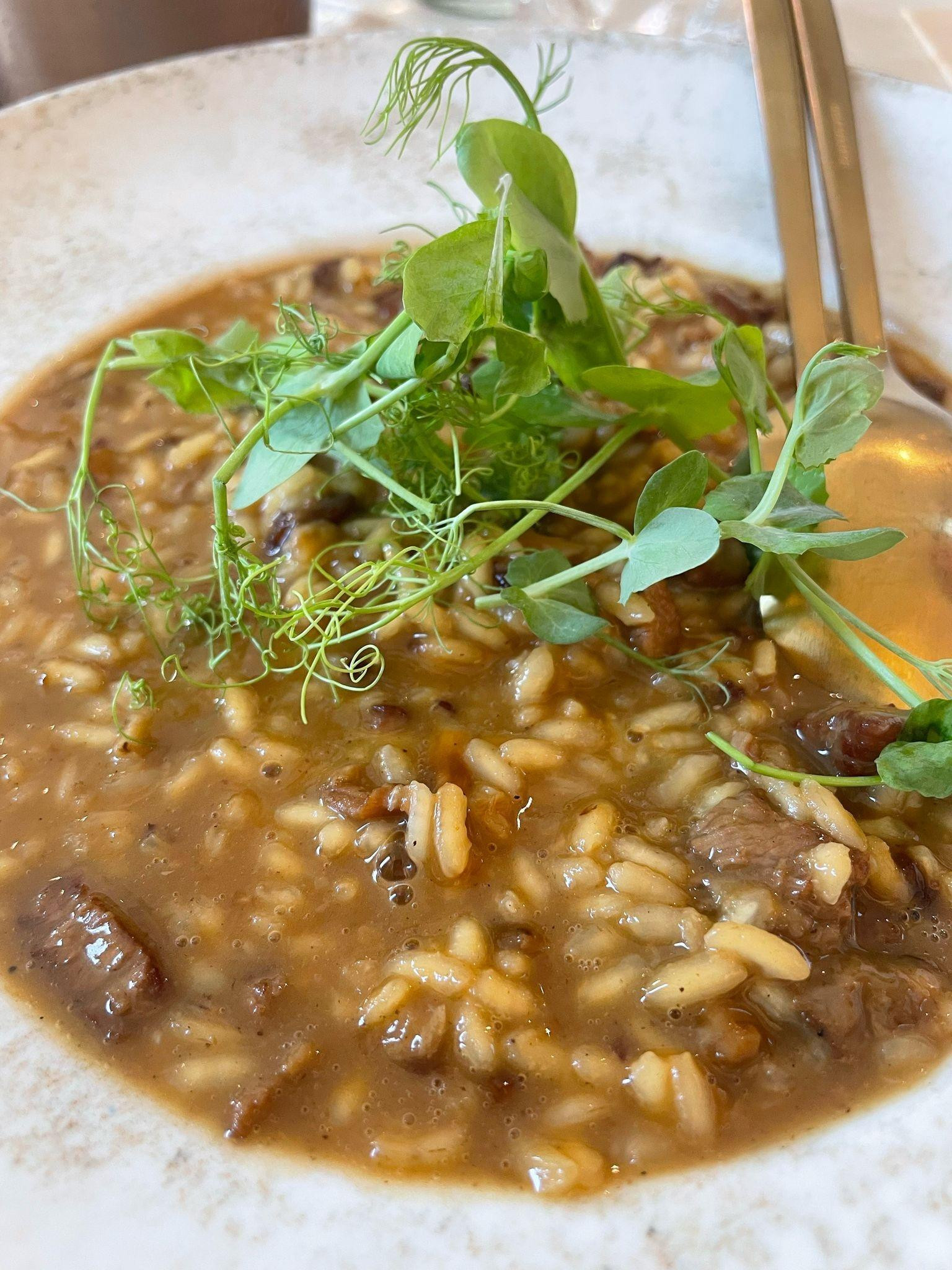 Rižoto Makamana s biftekom (13,90 €) bio je lagan i osvježavajući, što u vrućim danima ima smisla. Riža je kuhana do savršenstva, ali umak je bio nešto rijeđi nego što smo očekivali. Iako smo navikli na pun okus mesnih rižota, ova opcija je puno laganija i prihvatljivija za vruće ljetne dane. Očito da kuhinja i dalje traži balans između ljetne lakoće i punine okusa. Ipak, nije bilo razloga za nezadovoljstvo, više je to bila primjedba na detalj.