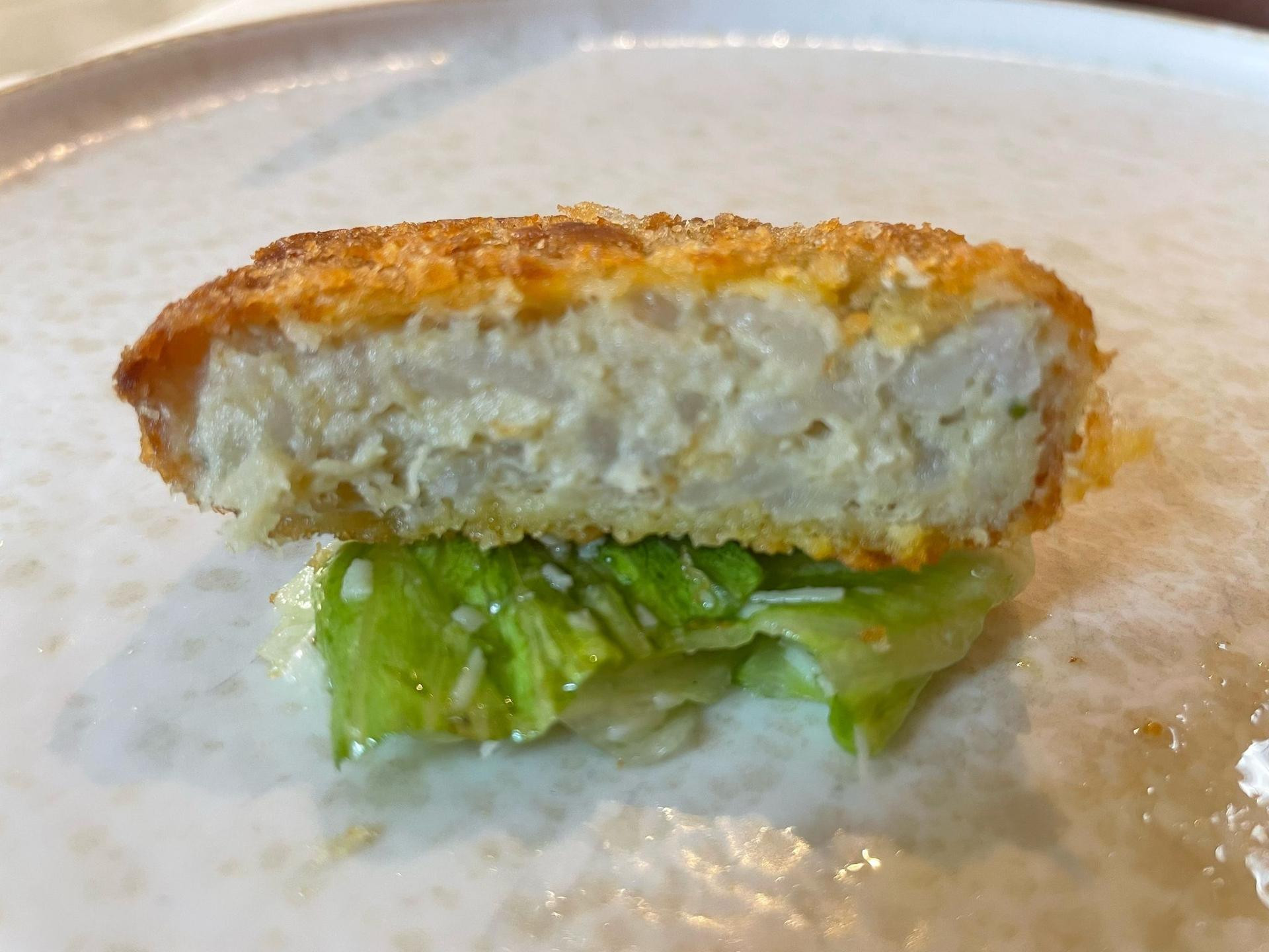 Pileći arancini na cezar salati (11 €) bili su nam ovaj ručak najslabija karika - salata je bila svježa i pravilno začinjena, no arancini su bili za nijansu prepečeni. Za jelo koje bi trebalo biti hrskavo izvana i mekano iznutra, malo nas je razočaralo. No to samo pokazuje da kuhinja koja većinom odlično odrađuje posao još uvijek ima prostora za doradu.