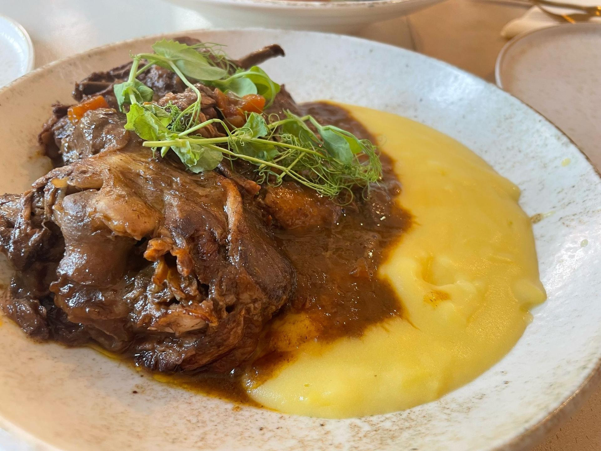 Janjetina (14 €), iako sporo kuhana i mekana, bila je za nas malo teža opcija, osobito u kombinaciji s pire krumpirom. Masnoća je dominirala, pa je to jelo zahtijevalo nešto više energije da se “svari”, što ljetni dani obično ne prate. Možda bi poneki lagani umak ili povrtni dodatak podigao cijelu priču.