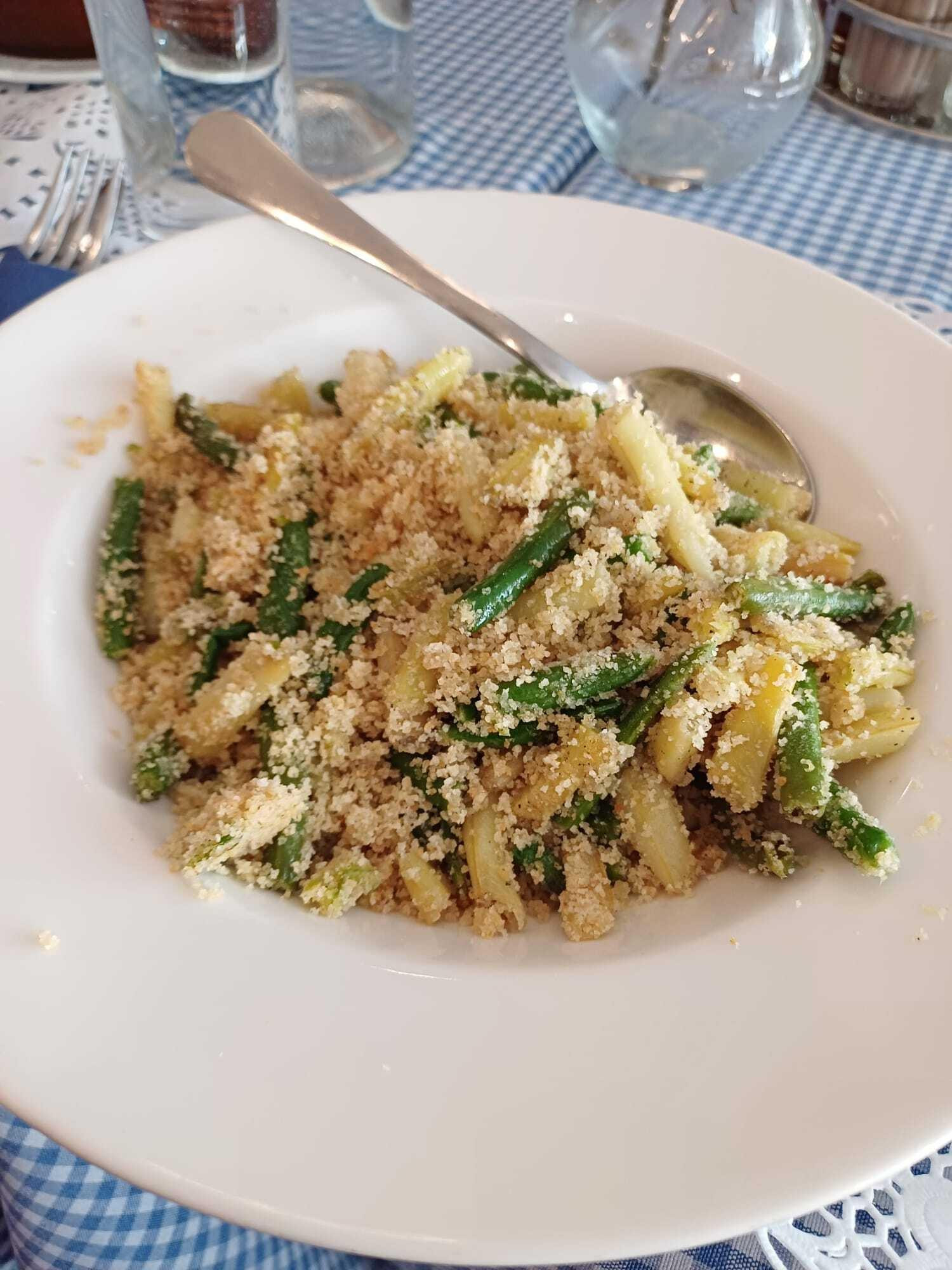 Iako je broj osoblja bio iznenađujuće velik za veličinu prostora, svi su bili iznimno ljubazni i profesionalni. Tijekom ručka namjerno smo promijenili narudžbu i zatražili dodatni prilog samo kako bismo testirali njihovu fleksibilnost, i reakcija je bila odlična. Kako bismo testirali uslugu, zatražili smo abšmalcane mahune (5,50 €), jelo koje je sinonim za zagrebačku kuhinju.