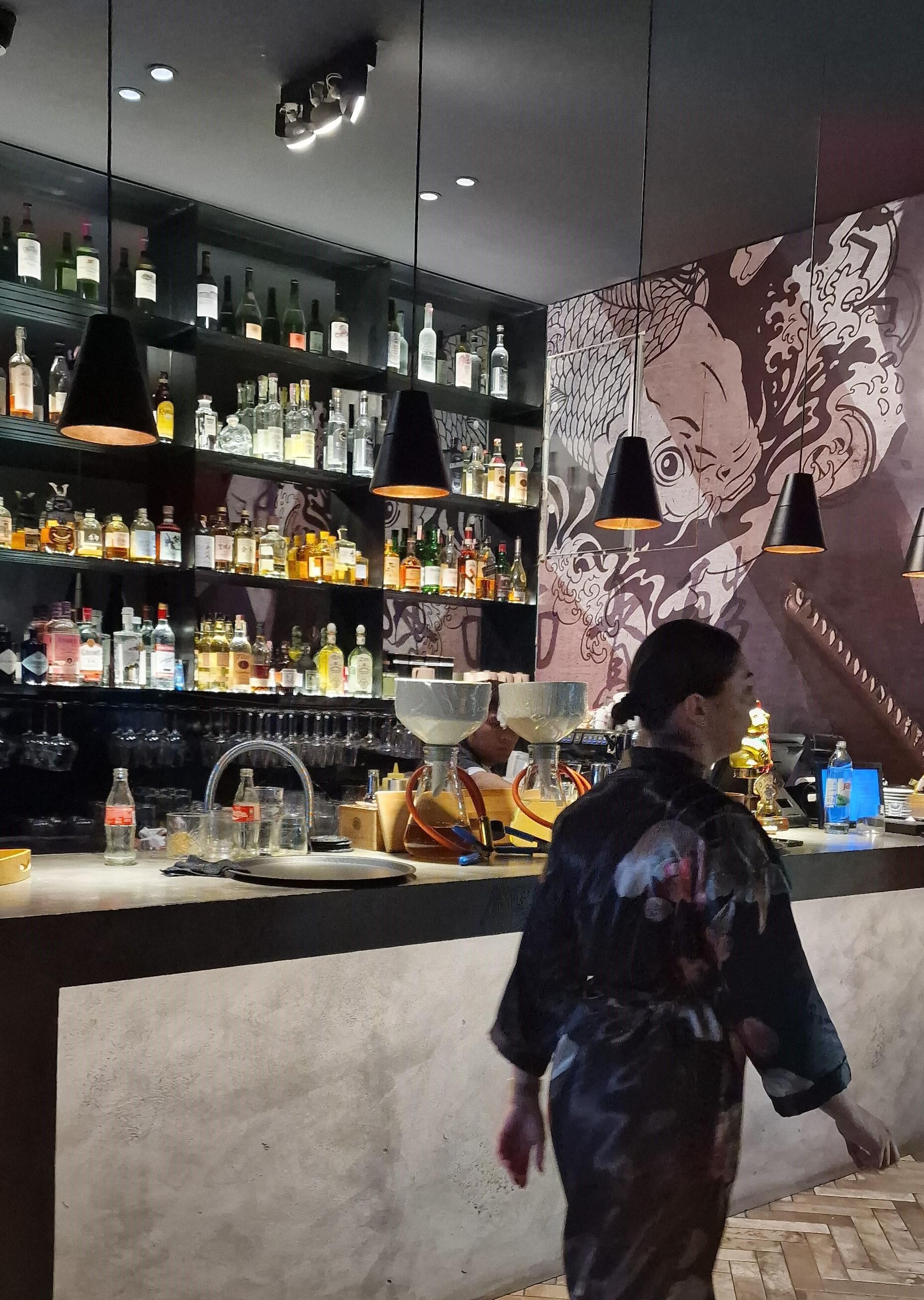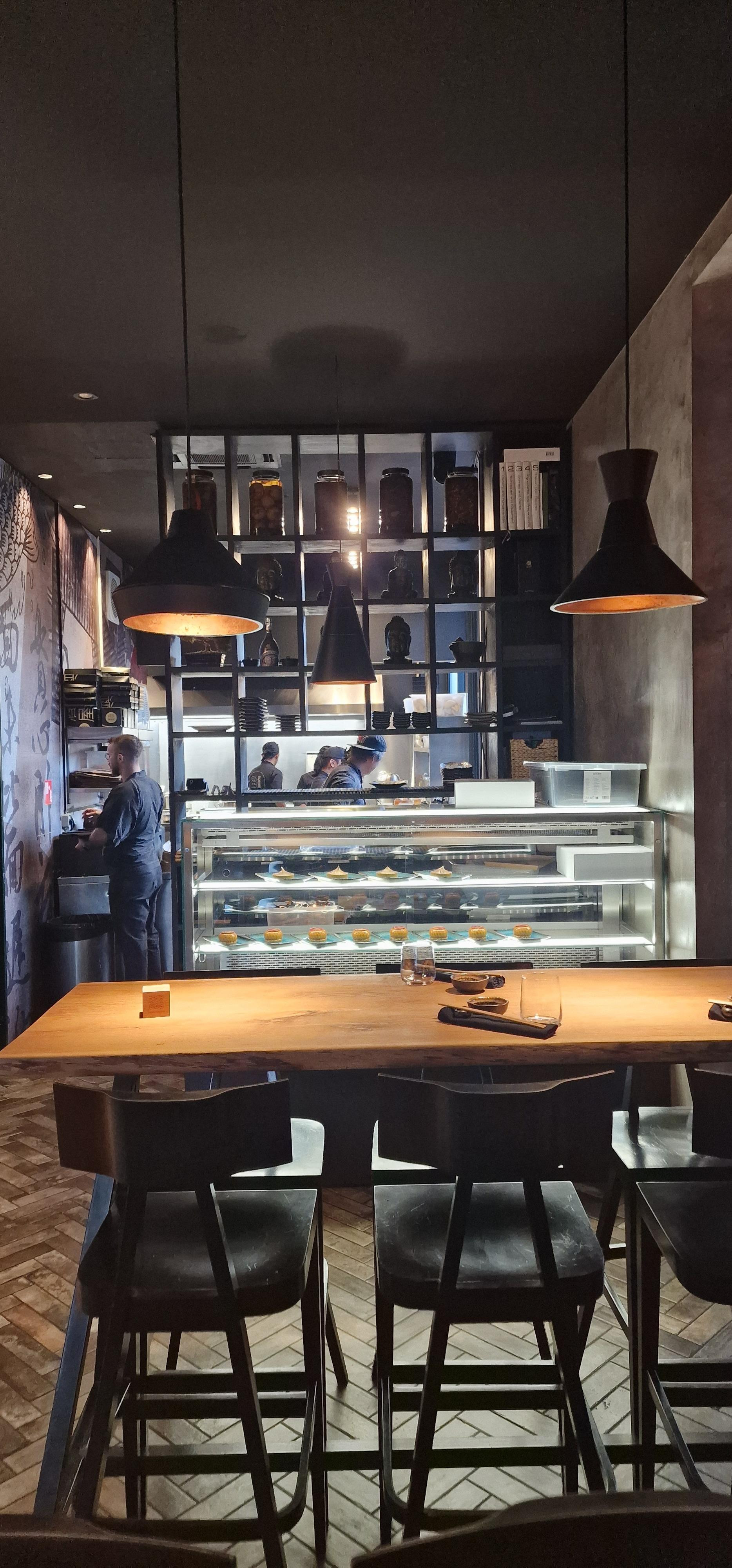 Restoran Izakaya na Selskoj cesti interijerom odmah daje naslutiti da se ovdje spaja tradicija s modernim pristupom. Ambijent je topao i elegantan - dominiraju tamni drveni stolovi, jednostavne, ali udobne stolice presvučene tkaninom u sivim tonovima, dok prigušena rasvjeta u visećim pletenim lampama stvara atmosferu pogodnu i za neformalni izlazak i za opušteniju večeru. S jedne strane prostora smjestio se upečatljiv bar s impresivnom selekcijom pića, dok je kuhinja djelomično otvorena, iza staklene pregrade, što gostima omogućuje pogled na pripremu jela - detalj koji dodatno podiže dojam transparentnosti i svježine. Na zidovima su diskretni japanski motivi, a ponegdje i biljke koje prostoru daju dodatnu toplinu.