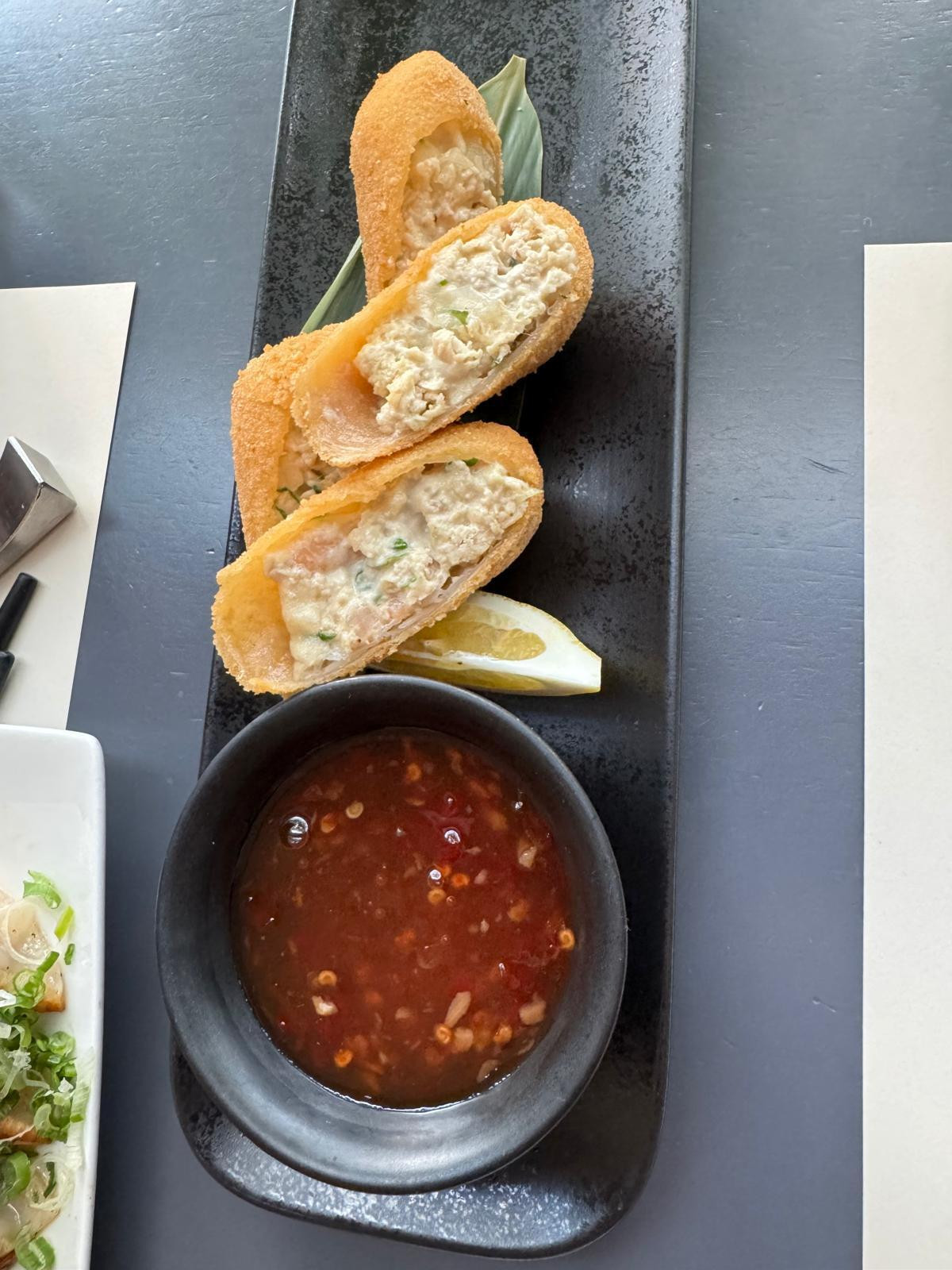 Pohanje je tehnički uredno, no koriste se klasične, fine mrvice umjesto panko mrvica. Zbog toga korica ima ujednačen, ali pomalo dosadan karakter, nedostaje joj prozračnosti i teksturalnog kontrasta koji bi podigao cijelo jelo. U konačnici, najviše okusa dolazi iz slatko-kiselog umaka, što samo naglašava koliko je sama rolica aromatski suzdržana. Umjesto da istupi s jasnoćom okusa i teksture, djeluje kao kompromisno jelo, siguran izbor za one koji žele nešto egzotično, ali ne žele biti izazvani.