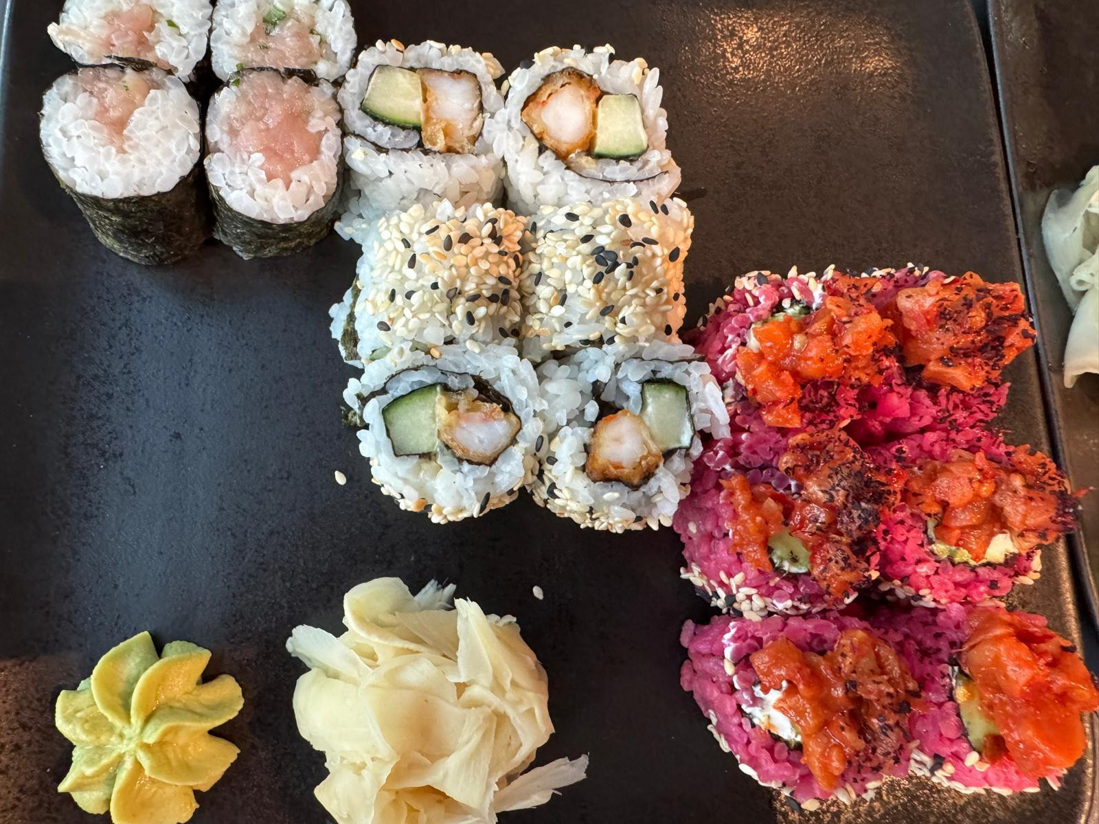Na crnoj podlozi bez dekoracija serviran je trostruki niz rolica koji na prvi pogled djeluje kao pažljivo osmišljen sushi opus. Od klasične negitoro hosomaki rolice, preko tempura uramakija, do napadno ružičaste Spicy Tekka rolade s ciklom redoslijed zalogaja vodi nepce od suptilnog prema eksplozivnom, i to nije slučajno.