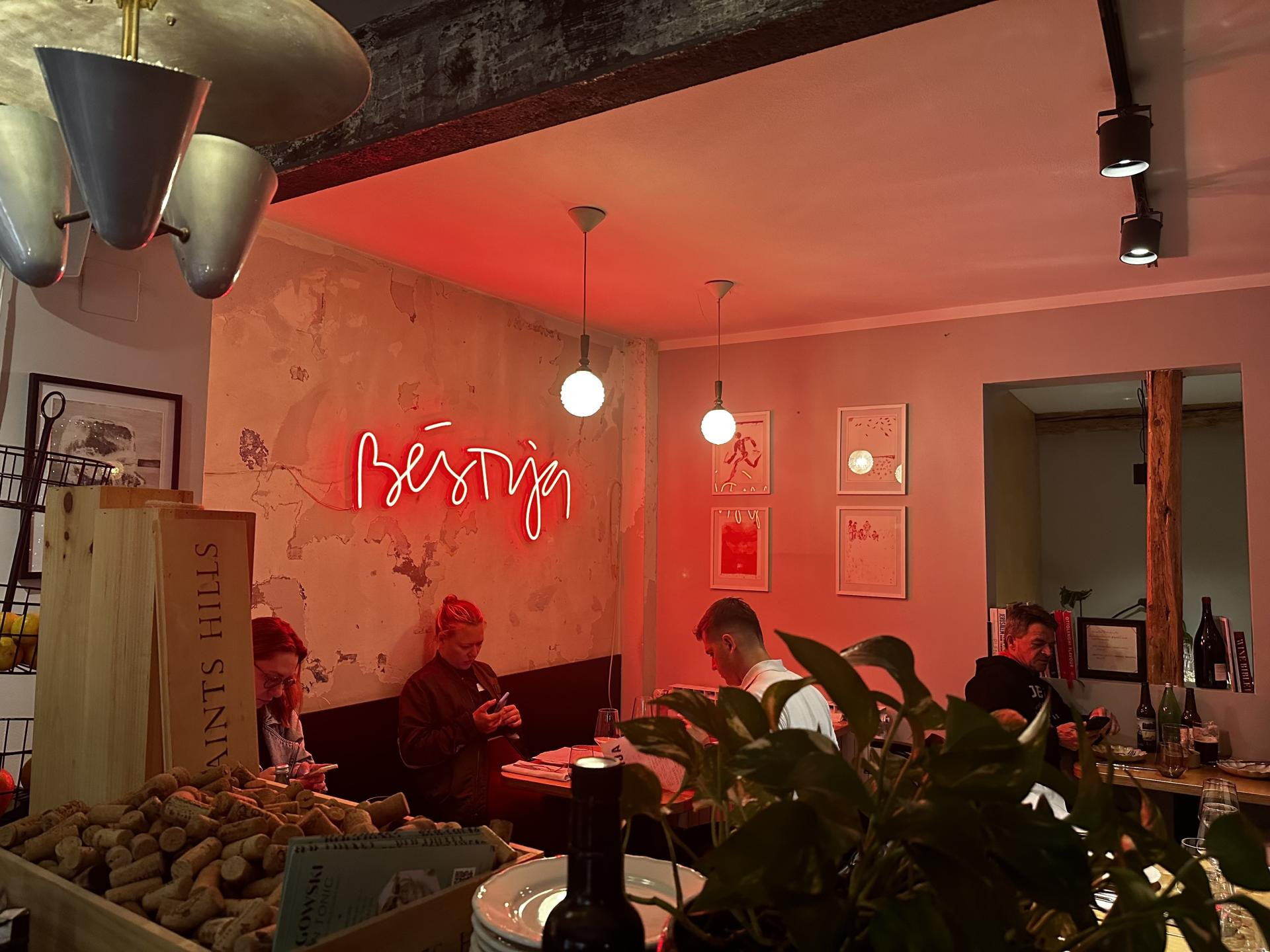 Ambijent Beštije je minimalistički, ali topao - prozračan, s decentnim svjetlima i ugodnom glazbom u pozadini. Osoblje je iznimno ljubazno, profesionalno i nenametljivo - znaju svoje vino, znaju svoj meni, i rado će pomoći bez trunke pretencioznosti. Atmosfera je opuštena, ali nikad ne prelazi u ležernost koja gubi ritam. I baš kao što prostor uspijeva spojiti suzdržanu estetiku s ugodom, tako i kuhinja pokušava balansirati između lokalnog i globalnog, jednostavnog i složenog, poznatog i novog.