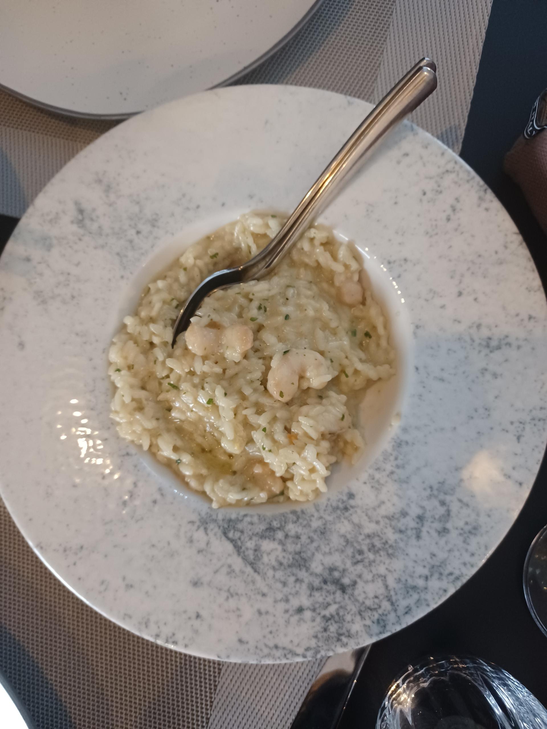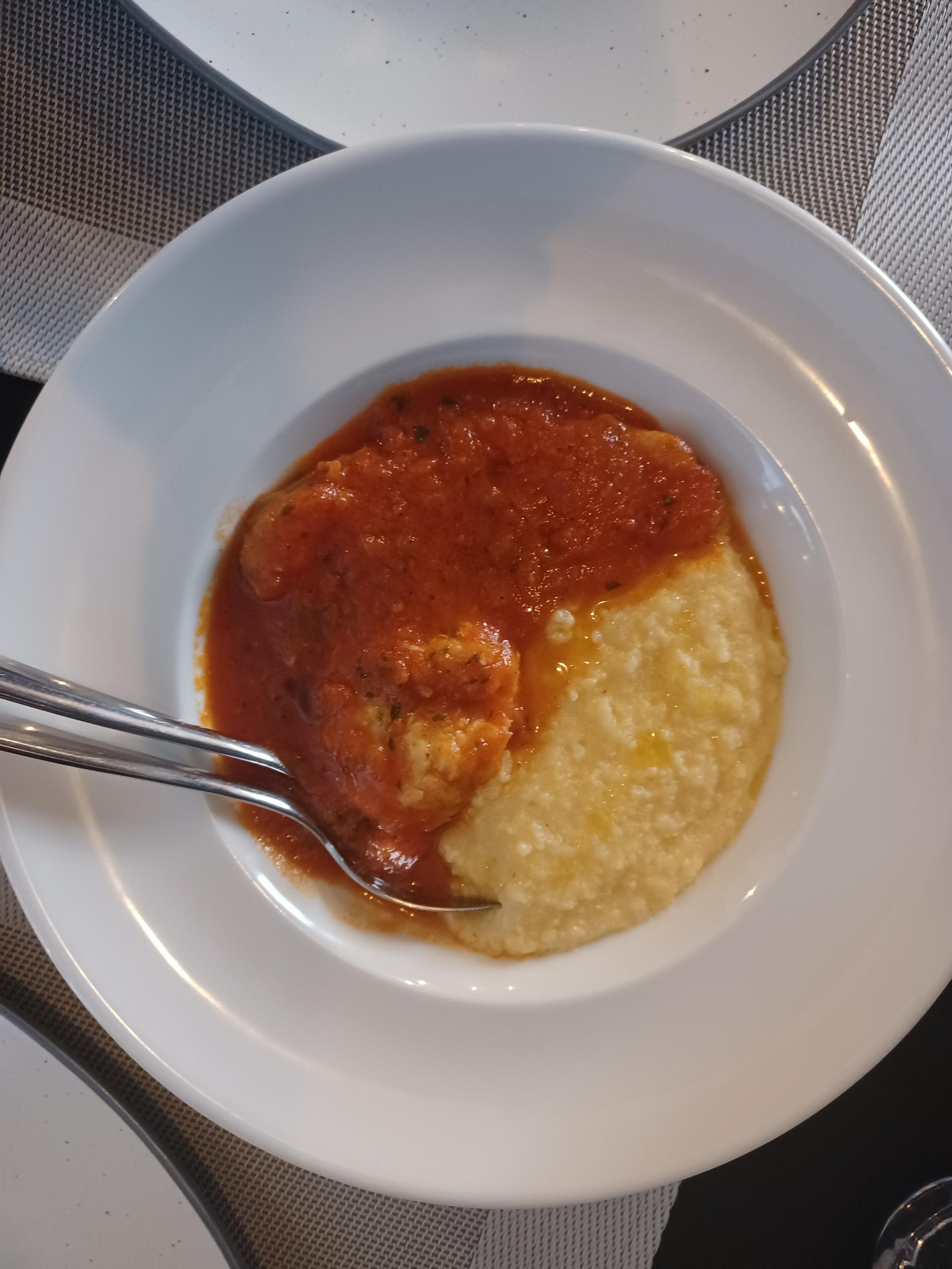 Ručak smo, dakle, započeli rižotom od škampi (135 kn) i blatskom poparom od grdobine (90 kn). Oba su jela bila jako dobra: rižoto je bio korektno skuhan, umjereno kremast i s lijepim očišćenim repovima škampa. Blatska je popara zapravo jedna od mnogobrojnih varijanti brudeta i obično se poslužuje s krumpirom, no ova je zlinjska izvedba s nježnom, kremastom purom/ palentom jako dobro funkcionirala. Komadi grdobine u šugu bili su izvrsni, čvrsti i elastični, pružajući pod zubima idealan otpor.