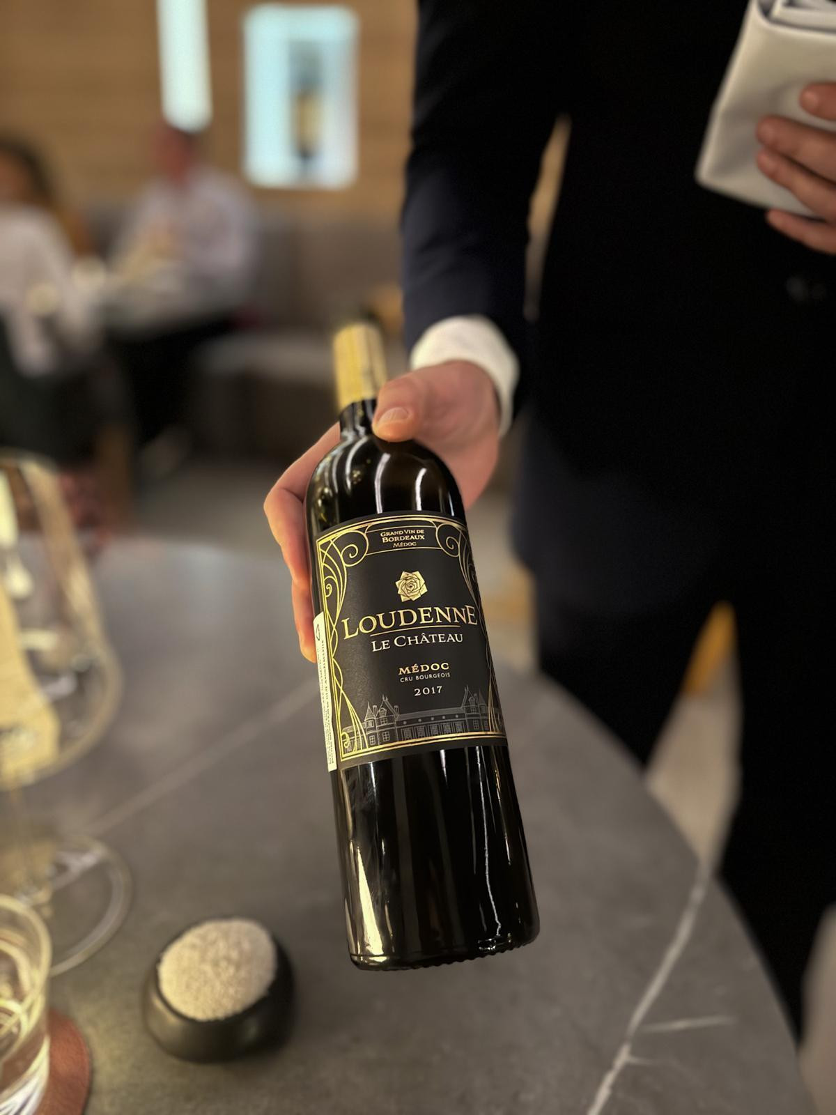 Treći slijed nosi jedino crveno uparivanje večeri: Jakobova kapica i gljive u hrskavom omotaču od prženog kelja. Zalogaj je najuzbudljiviji dosad, teksturalno najhrskaviji, s čistom slanoćom kapice i umamijem gljiva. Pairing donosi Château Loudenne Médoc Cru Bourgeois 2017, lijevoobalnu kupažu merlota i cabernet sauvignona. Čvrsti tanini nose hrskavi kelj i umami gljiva, ne prikrivajući prirodnu slatkoću Jakobovih kapica.