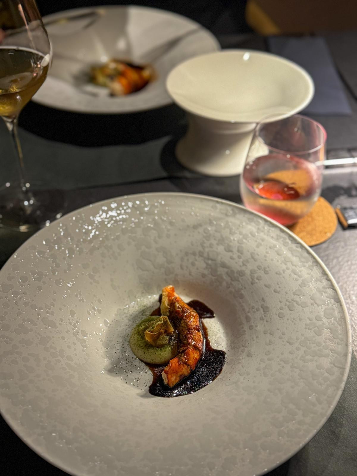 Može li bolje od prethodna dva slijeda? Donekle. Rep jastoga s malim pireom od čičoke, preliven gustim umakom od jastoga, škampa i kozica. Iznimno bogatog i gustog okusa, jelo je upareno s jednako bogatim bijelim Venjem 2015., velikog Enjingija. Moćno.