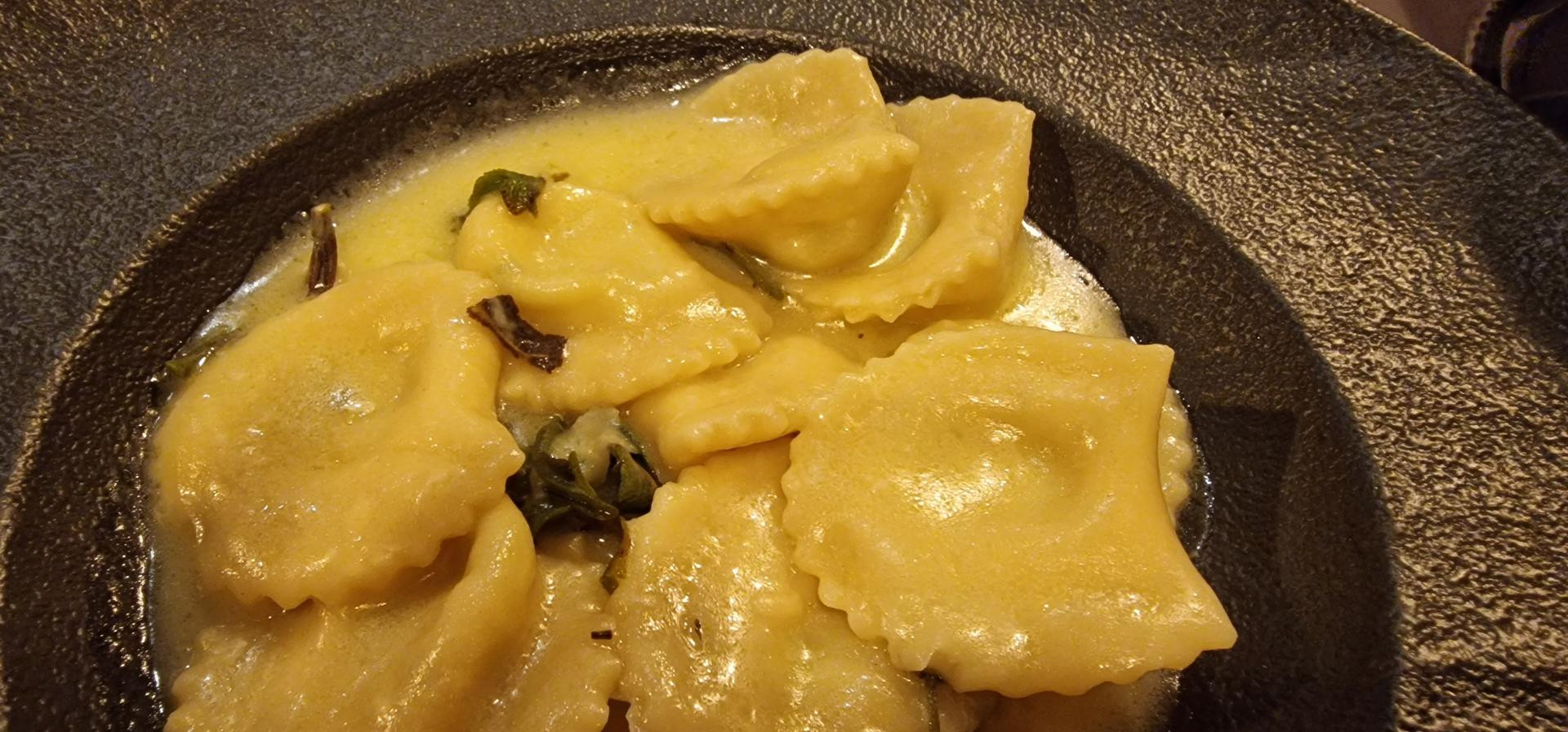 Kao toplo predjelo odabrali smo rafiole od sira s kušom, i nakon tog poželjeli da je to kraj našeg obroka jer su okusi bili savršeni. Kravlji sir u rafijolima bio je punog, kremastog okusa i izvrsno se nadopunjavao s umakom u kojem se osjetila kadulja čija je aroma ostajala na nepcima i sljubljivala se s malvazijom.