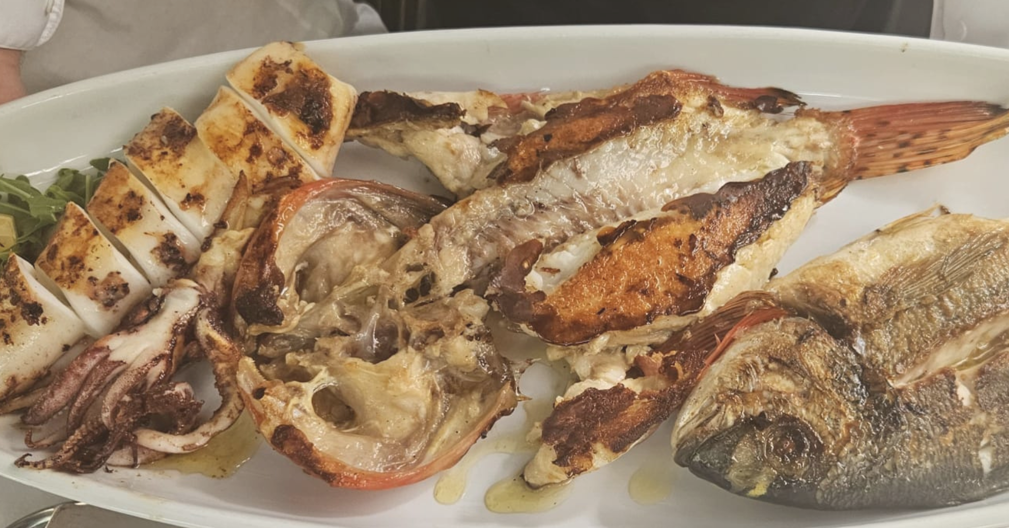 Riba je bila božanstvena. To se moglo naslutiti već u vitrini, ali priprema je potvrdila najviše domete. Koža hrskava, meso nježno i sočno, bez trunke presušenosti. Škarpina, poznata kao riba zahtjevna za pripremu, ovdje je bila izvedena bez greške. Lignjun je bio kuhan al dente, s okusom mora i dima, pokazatelj da grill majstori u Školjki znaju točno što rade. Stolno maslinovo ulje, nenametljivo i uravnoteženo, omogućilo je ribljim okusima da sviraju prve violine.