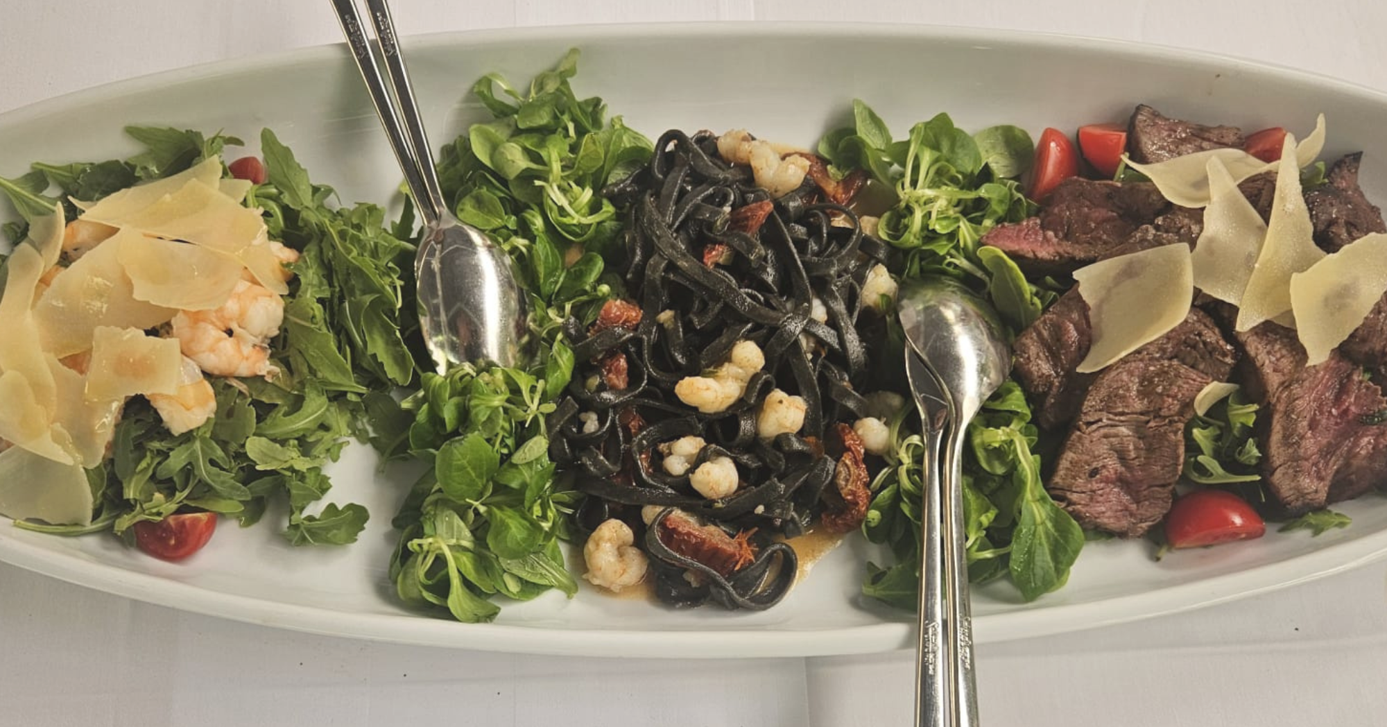 Slijedili su tanjuri koji su bili pomalo sigurni i predvidljivi. Kozice na rikoli (18,50 €) bile su savršeno pečene, kao i biftek tagliata s Grana Padanom (27 €). Oba proteina bila su izvrsno izvedena, ali začudno slična u kompoziciji: različite životinje, a isti tanjur. Previše rikole, premalo uzbuđenja. Crna tjestenina sa škampima i sušenom rajčicom (18,50 €) bila je korektna, ali bez dubine koju crna tjestenina zna obećavati. Sve skupa, jela koja mole za novi začin, novi kontrast, novi razlog da ih se pamti.