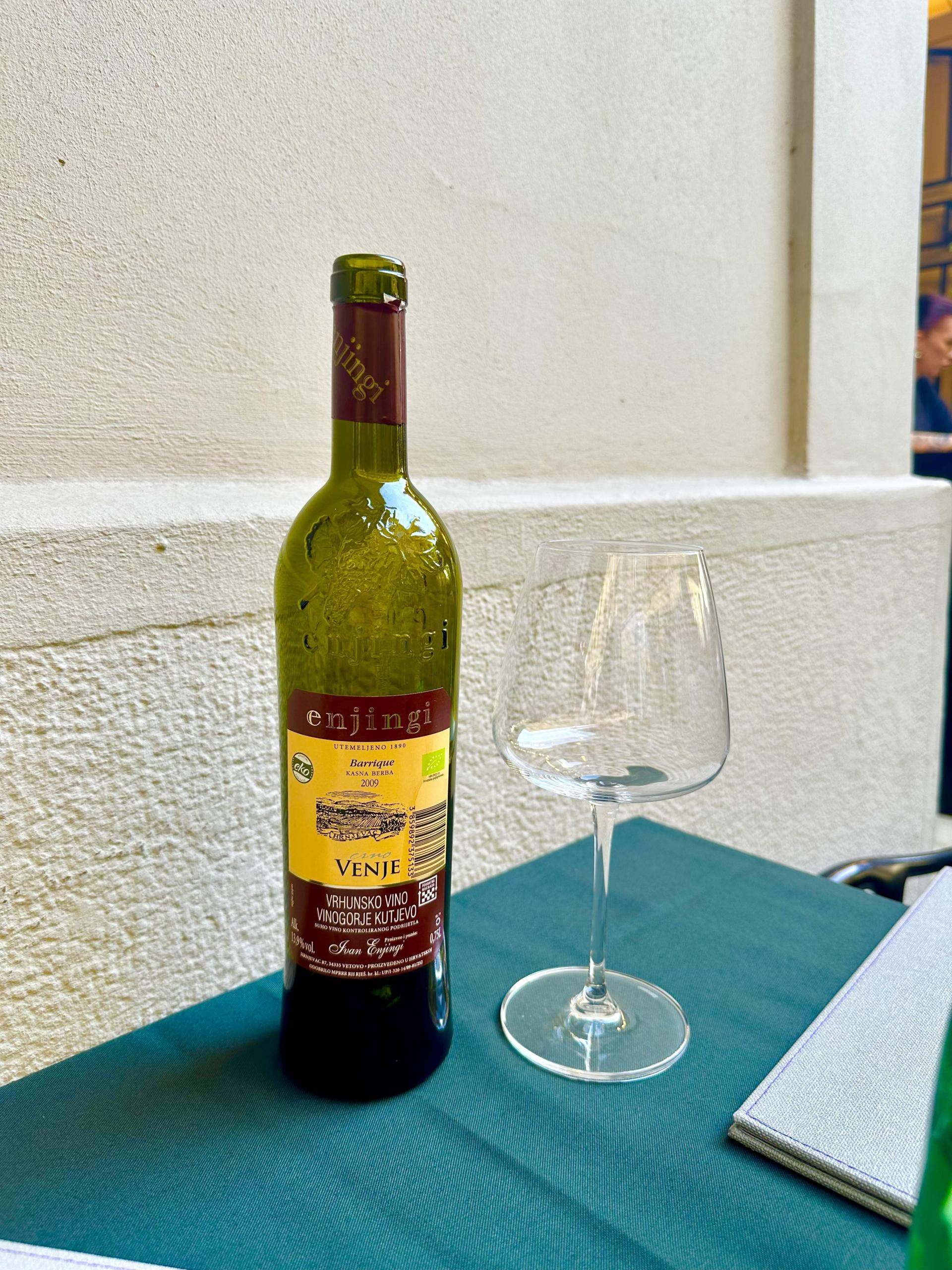 Inače, prije same naručili smo po čašu Košćak Blanc de Noirs pjenušca koji je izrazito svjež i nježan, tako da divno odgovara i jelima na bazi ribe i onima na bazi mesa. Tijekom obroka pili smo Enjingi Venje crno – ozbiljnije vino s puno karaktera koje se baš odlično složilo s janjetinom, ali i ostalim bogatijim jelima s menija.