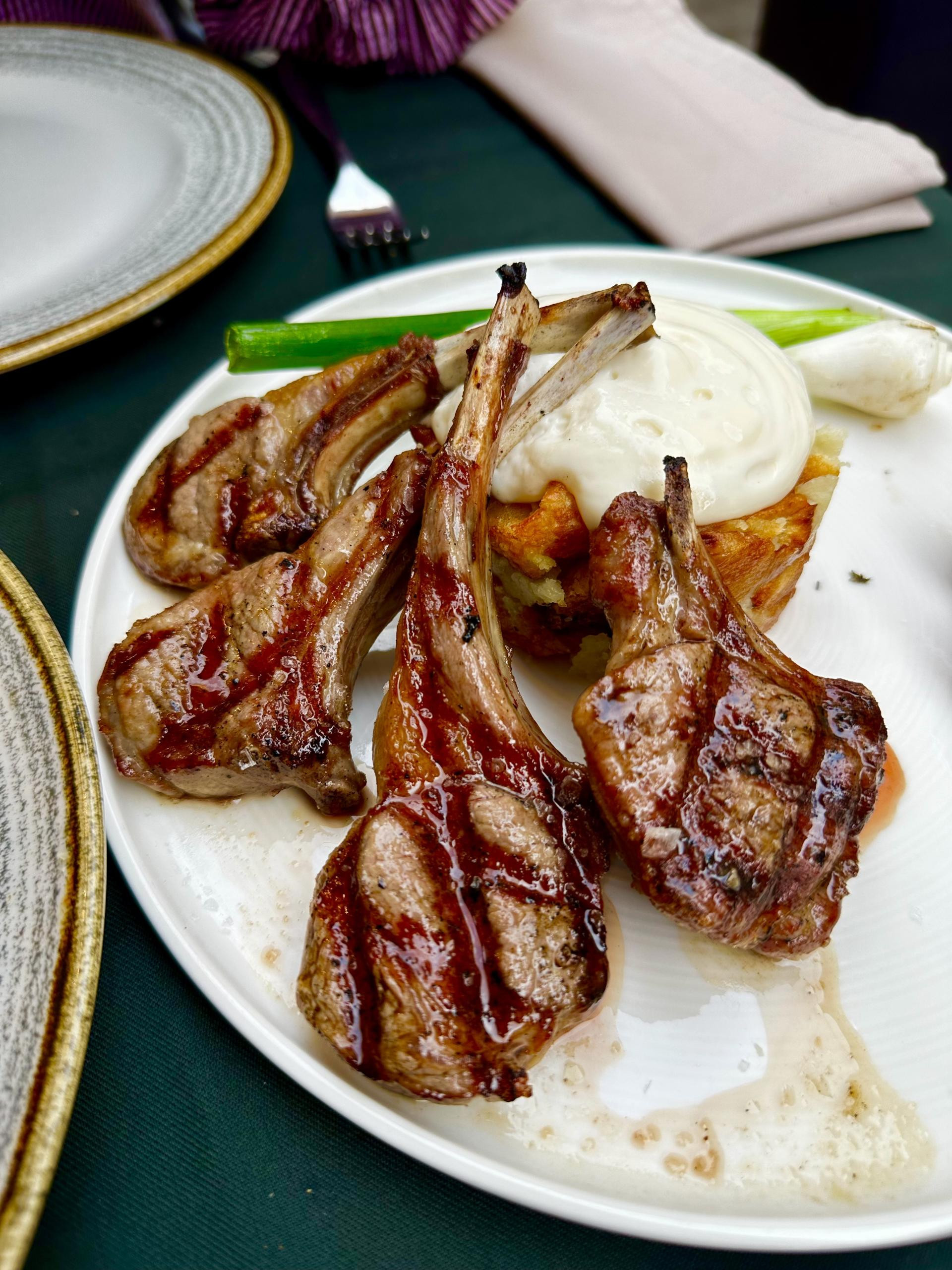Na preporuku konobara, nadalje smo se odlučili za janjeće kotlete (35 €), koji su stigli servirani uz aromatizirani krumpir, espumu od Grana Padana, sotirane cherry rajčice i grilani mladi luk. Meso je bilo pečeno medium, kako nam je i preporučeno, savršeno ružičasto i sočno. Poseban kompliment zaslužuje balans komponenti (svaka ima svoju ulogu, od slane pjene do slatkastog luka i kremastih krumpira) i činjenica da su ovdje išli na provjerenu klasiku.