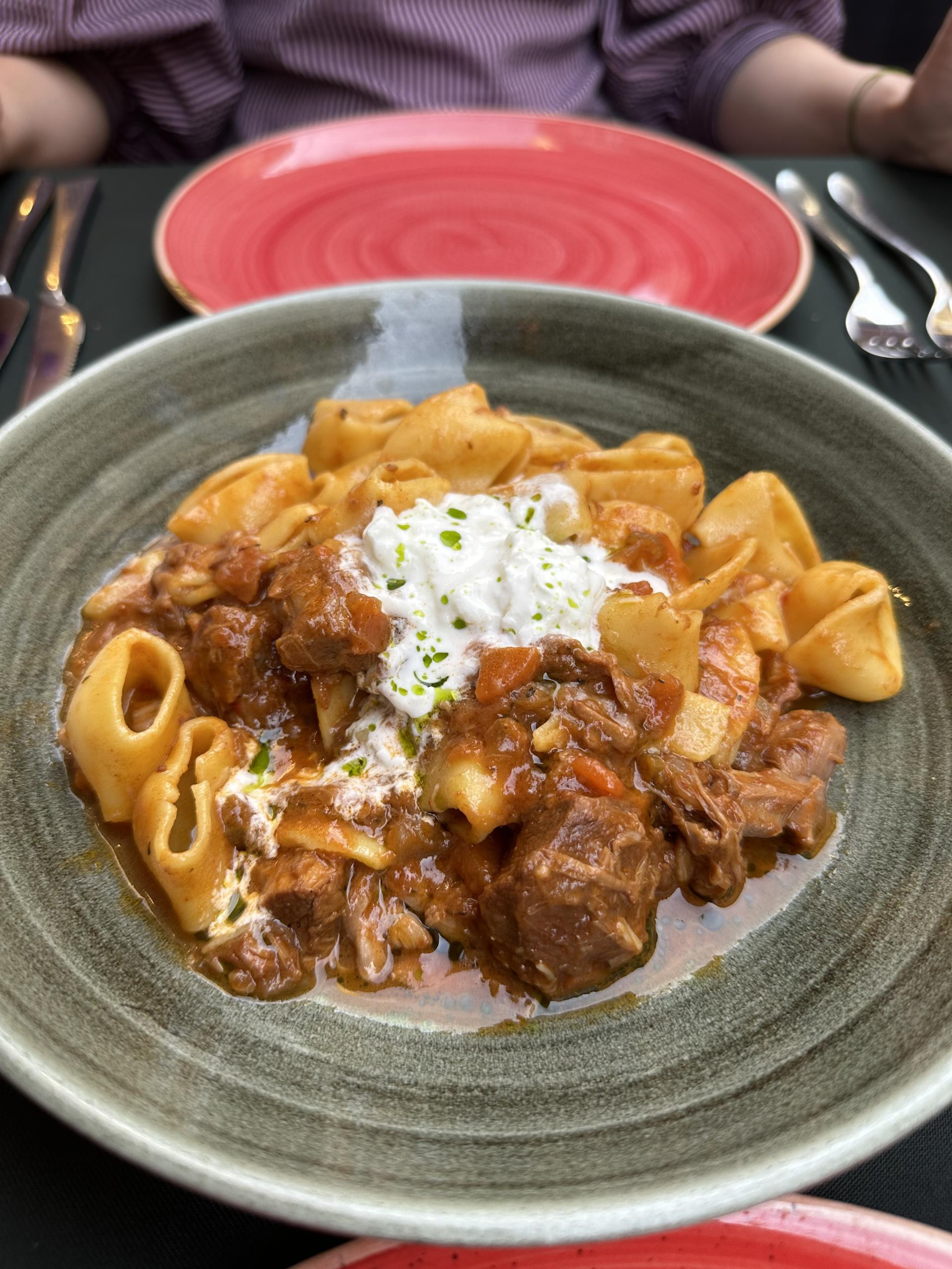 Paccheri s raguom od janjetine, dodatkom džema od višanja, peperončina, stracciatelle i ulja od bosiljka (25 €), koje smo podijelili, pokazali su se apsolutnim vrhuncem večeri. Ragu bogat, duboko aromatičan, ali ne preuzima nego suptilno zaokružuje okus janjetine. Domaća tjestenina bila je skuhana točno kako treba – al dente, ali ne gruba. Riječ je o jelu koje potvrđuje da Boban nije samo lokacija, već i ozbiljna kuhinja. Ovdje se ne dolazi samo na piće ili lagani zalogaj – ovdje se dolazi jesti. I to tjesteninu.