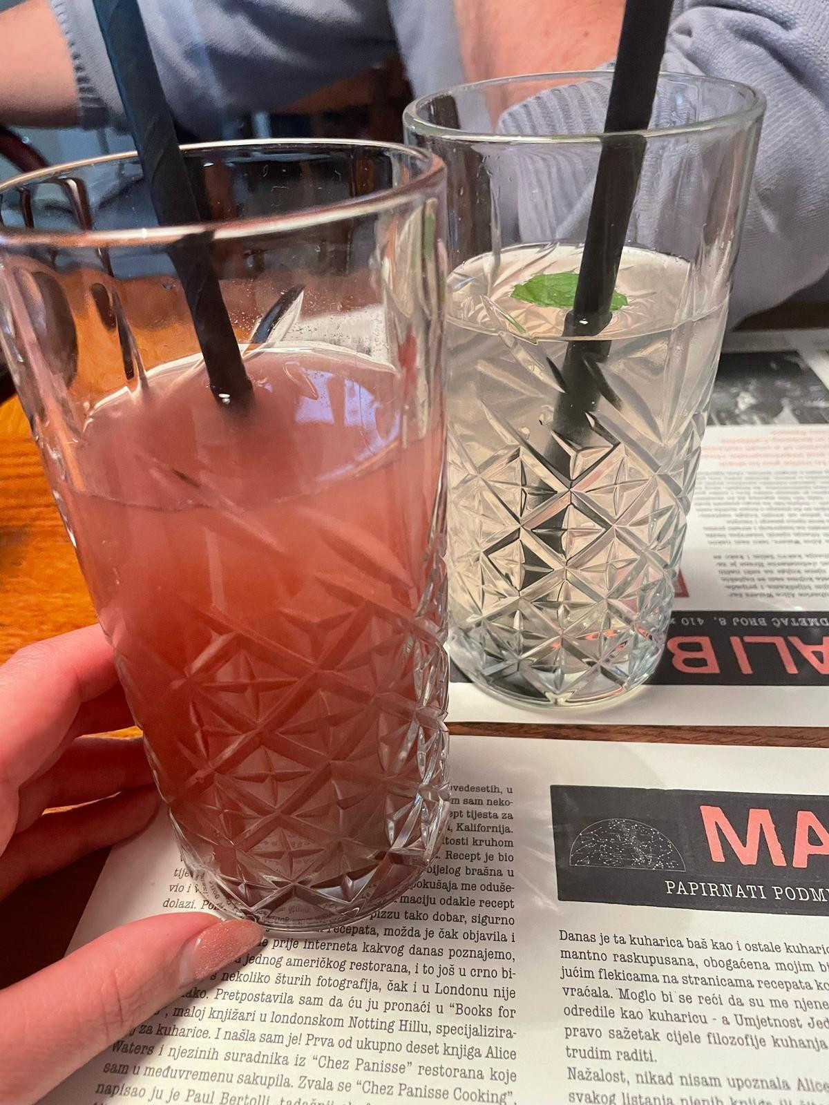Žedni od teške sparine prije kiše, krenuli smo s friško cijeđenim sokovima od maline i bazge (3,30 €). Iako savršeni za osvježenje, okusom su bili vodenkasti i brzo zaboravljeni.