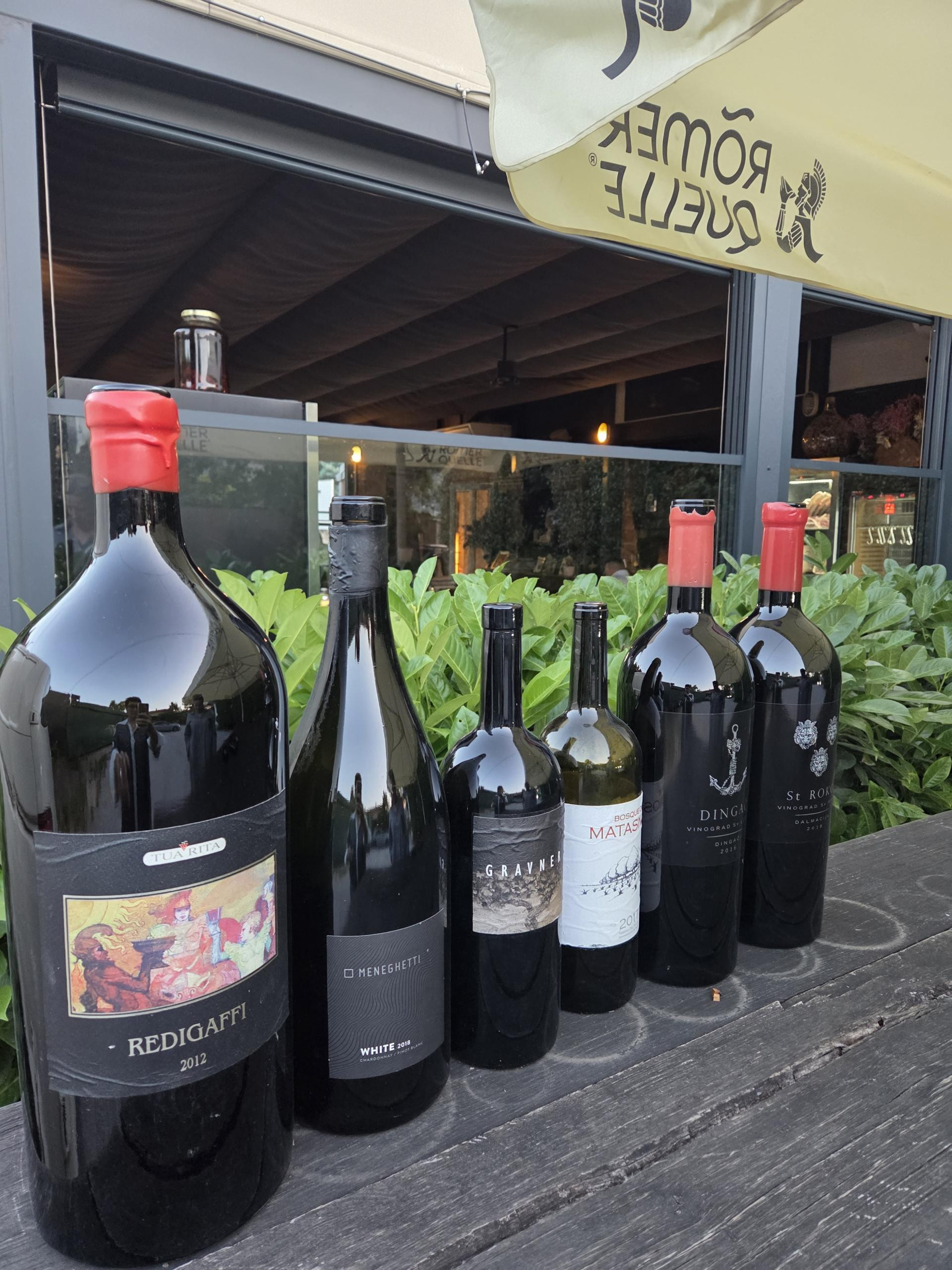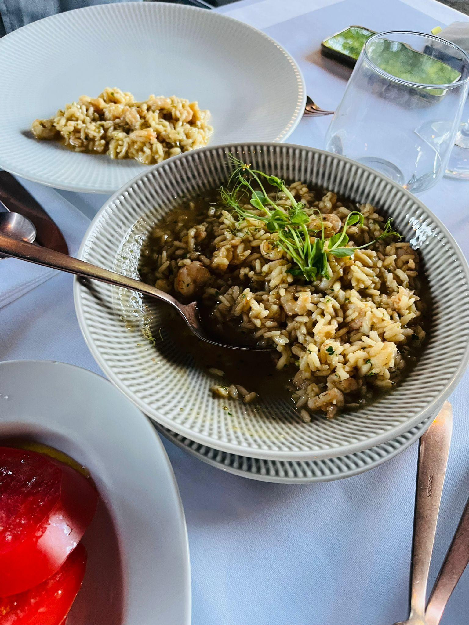 Rižoto od kozica, s druge strane, nešto je manje kremozan, ali bogatog okusa. Pretpostavljamo da je to zbog tipa riže koja je ostala više al dente, pa se sve skupa slabije povezalo, ali zaključili smo da su baš tako htjeli. U ovoj fazi večere uspjeli smo i doprijeti do vina koje nas je oduševilo, a dobro je pratilo i većinu jela na stolu, Krapež Lapor belo, koji je bio i najsmislenija vinska ponuda te večeri, zajedno s pošipom Nerica.